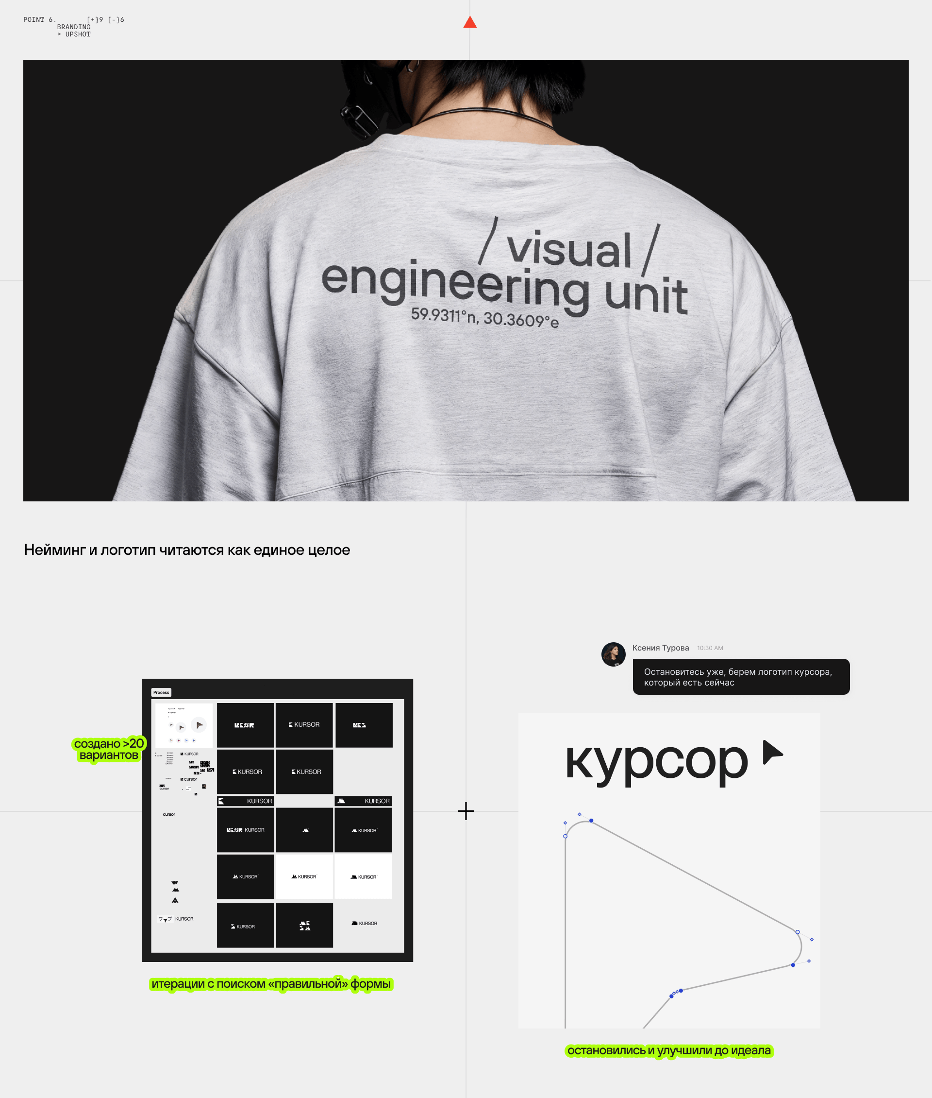 В брендинге удалось соединить два наших ядра — бизнесовость и креативность. Метафора курсора как навигатора органично легла в нейминг и выстроила целостную визуальную систему. Все точки касания теперь выглядят как единое целое.