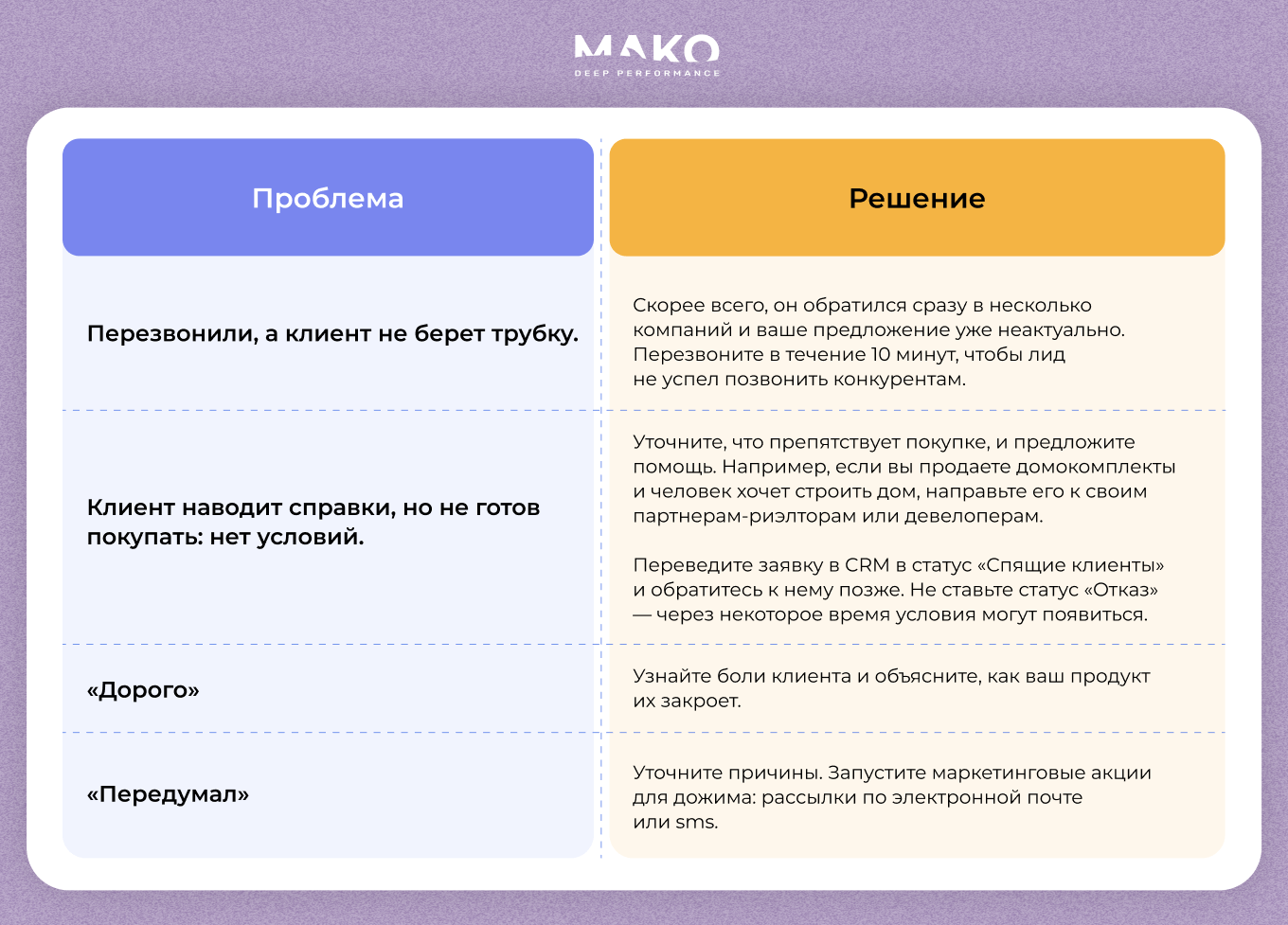 — Анализируйте работу отдела продаж и устраняйте слабые места.