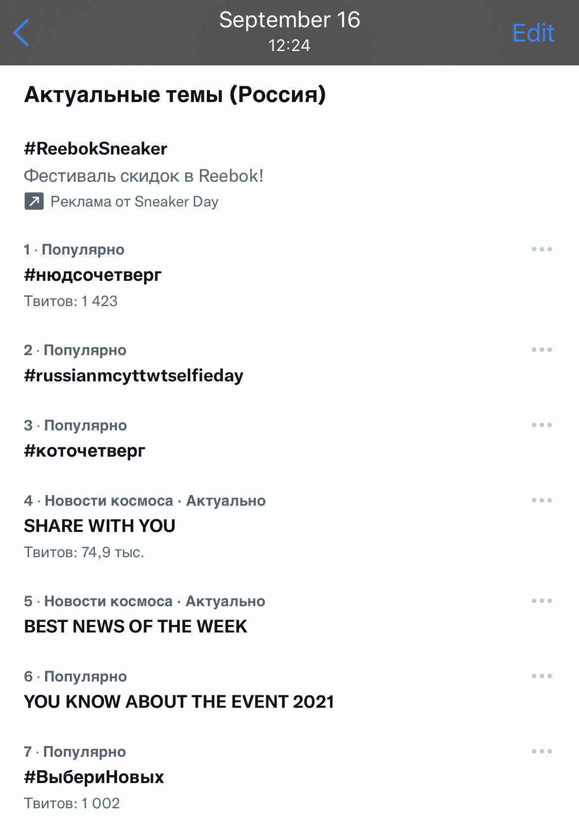 Да. Первое место в трендах всего Российского Твиттера. Нам удалось обогнать все политические партии, все Айфоны и абсолютно все новости, которые были в обсуждении 15 сентября. Ой, время 23:10, а хэштег ещё в трендах. Получается, мы перевыполнили план.