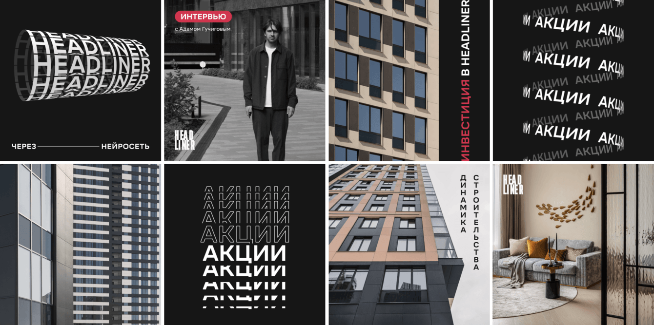 Типографика придает соцсетям трендовость и символизирует безостановочное движение вперед. Это легко объяснить: подход создает ассоциации с высокими башнями Headliner.
