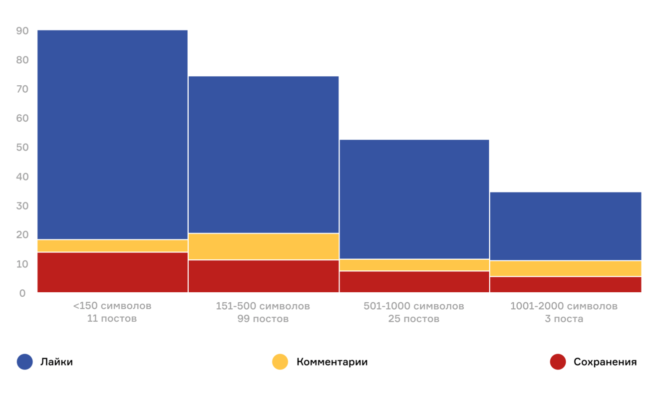 Мы заметили, что реакций на короткие тексты больше, чем на длинные.
