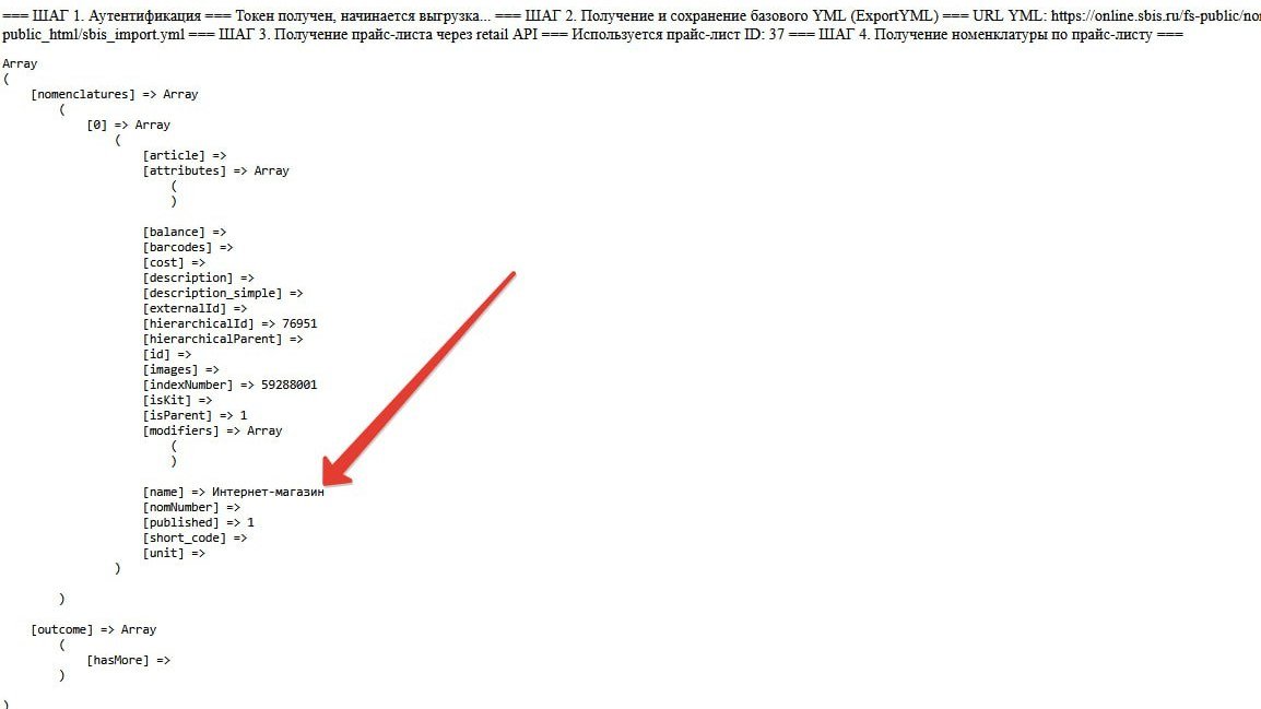 Не знаем, почему так устроено, но получить товары по API можно только из определенного прайс-листа, зная его id, id организации. Поэтому мы добавили нашу категорию с товарами «Интернет-магазин» целиком массово в прайс-лист. Далее по инструкции получили id прайс-листа, отфильтровали для тестов около 500 товаров из пары категорий, чтобы быстро произвести отладку, и получили все данные в массиве по каждому товару.