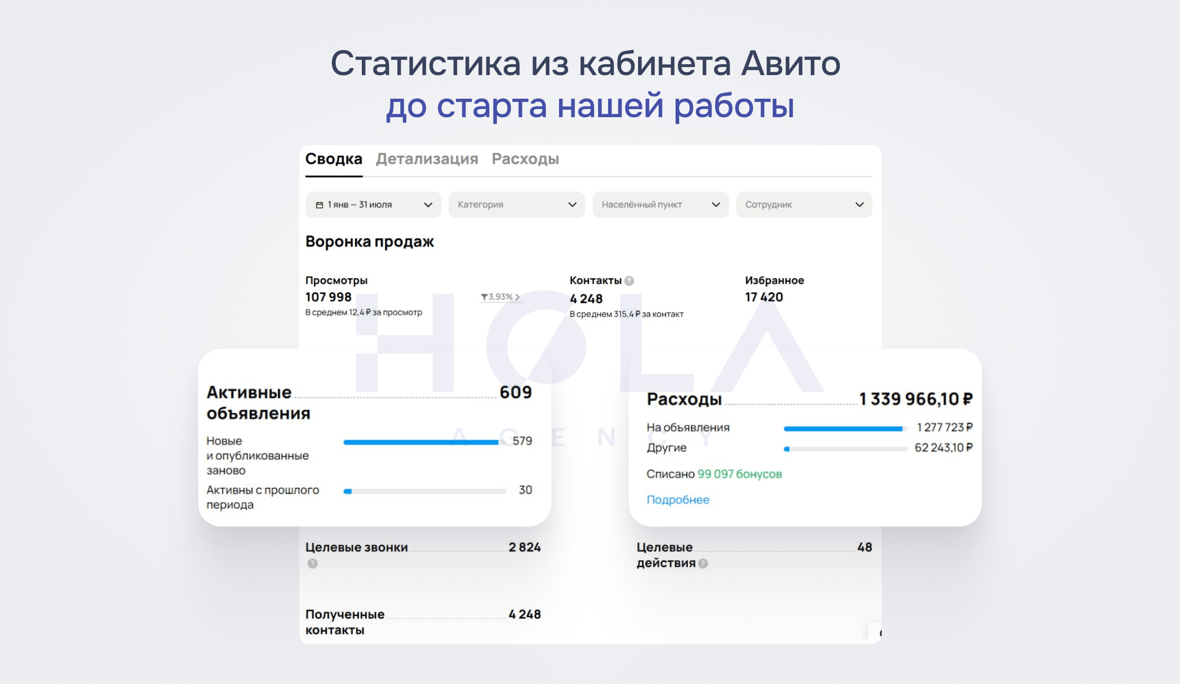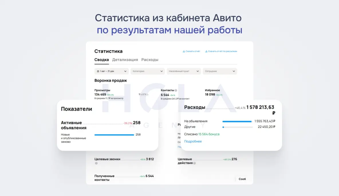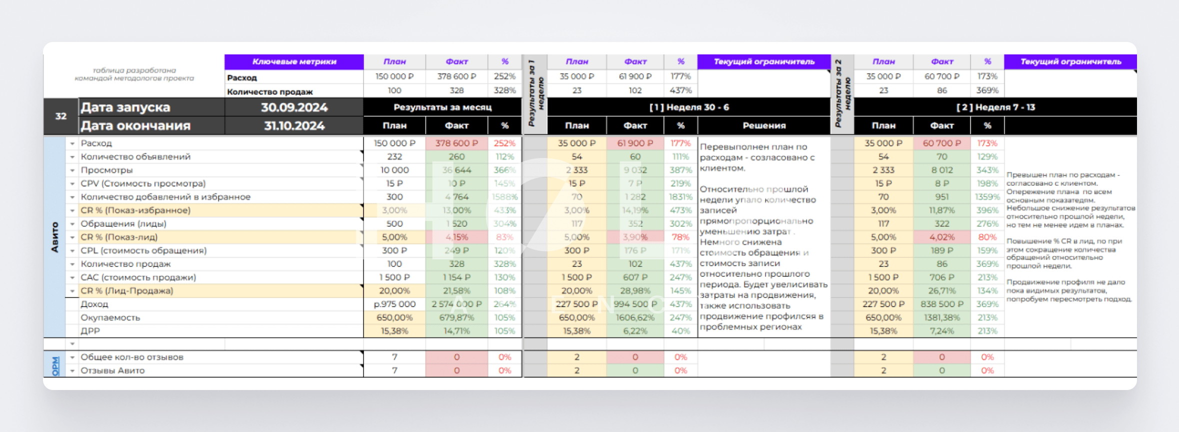 Каждый день наши аналитики собирают данные всех объявлений в каждом городе и передают их авитологу также из нашей команды, который корректирует продвижение для достижения необходимых KPI. Регулярный менеджмент и аналитика — основа для успешного достижения ключевых KPI.