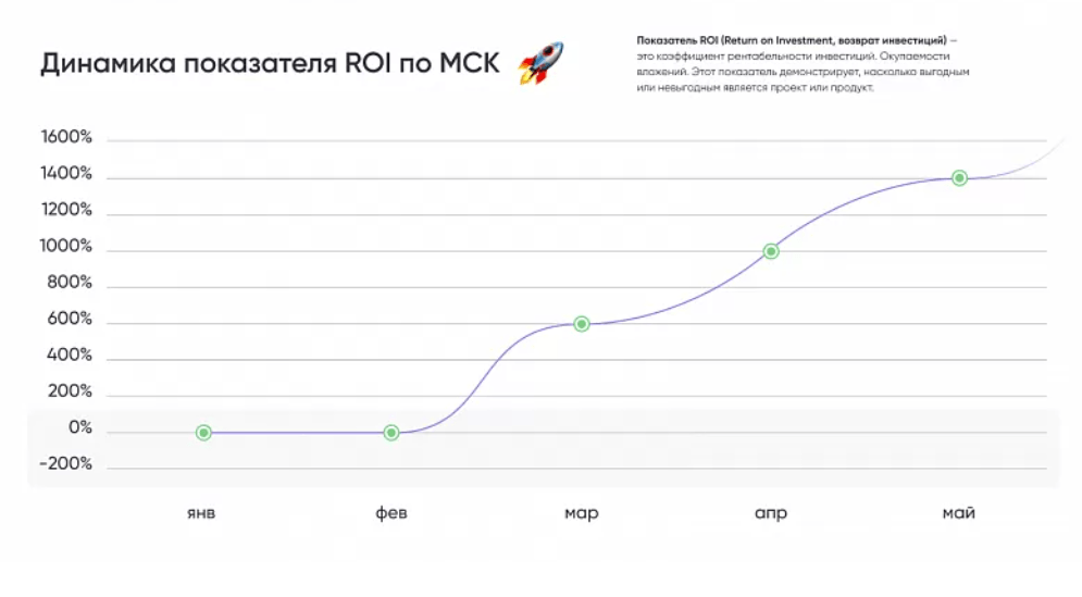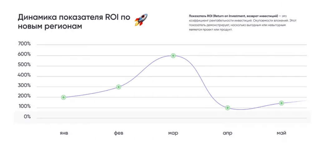 Вывести в плюс продажи интернет-магазина по региону Москва и занять некоторую долю рынка. Динамика ROI по МСК показала рост с -24% в январе 2022 до 1380% в мае 2022.