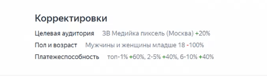 Чтобы исключить показы рекламы неплатежеспособной аудитории в кампаниях, были использованы корректировки ставок по возрасту и платежеспособности.