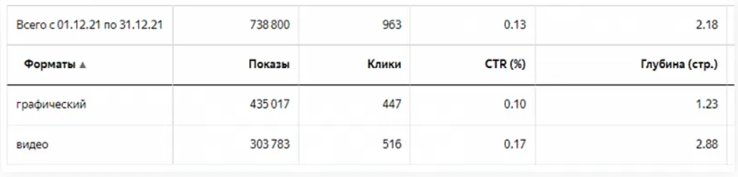 Условия показа: В качестве форматов объявлений были выбраны видеоролик и графические баннеры.