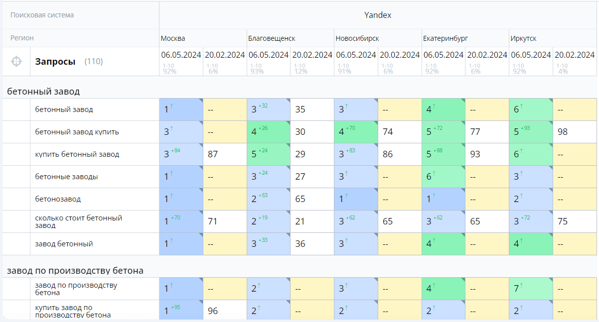 После проверки позиций, запросы которые не попали в топ-10, анализируем + корректируем вхождения, добавляем блоки текста. Смотрит как решается у конкурентов. Повторяем или делаем лучше.
