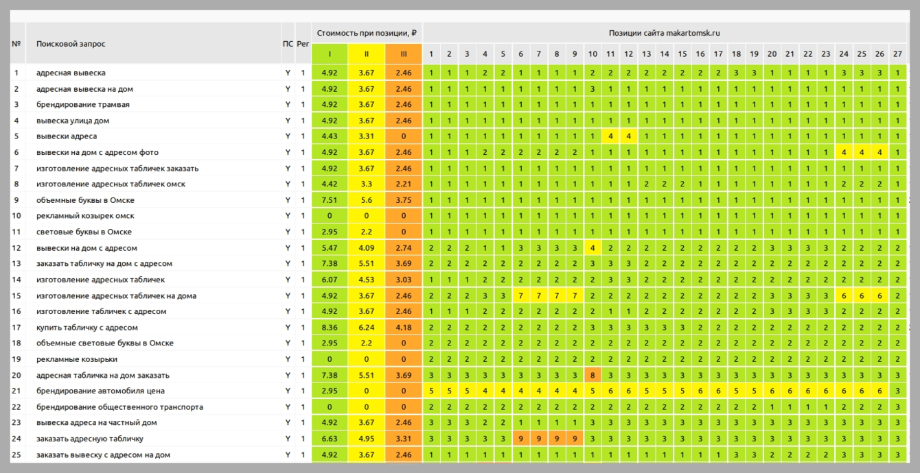 1. Вывод сайта в ТОП-10 по ключевым запросам, связанным с производством рекламных вывесок.