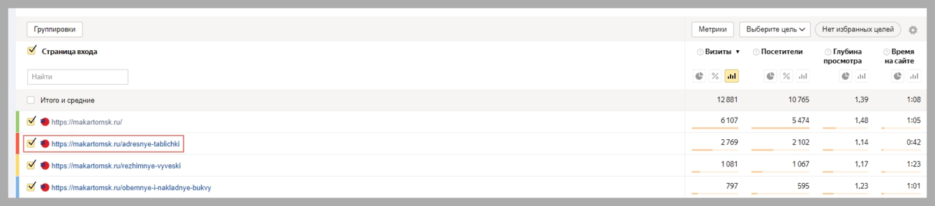 Страница с адресными табличками вторая по количеству визитов с поиска