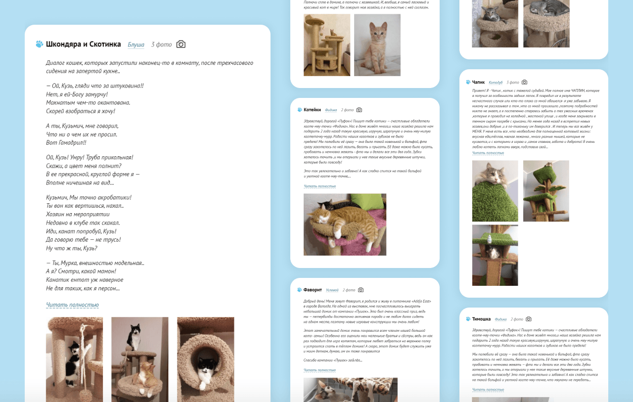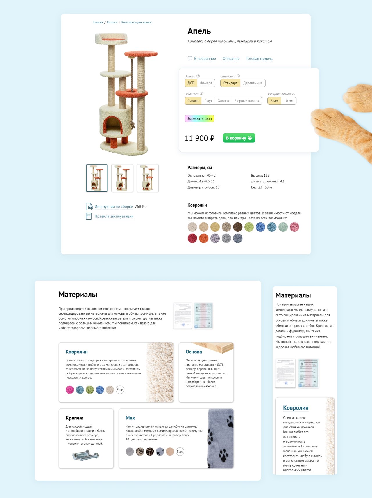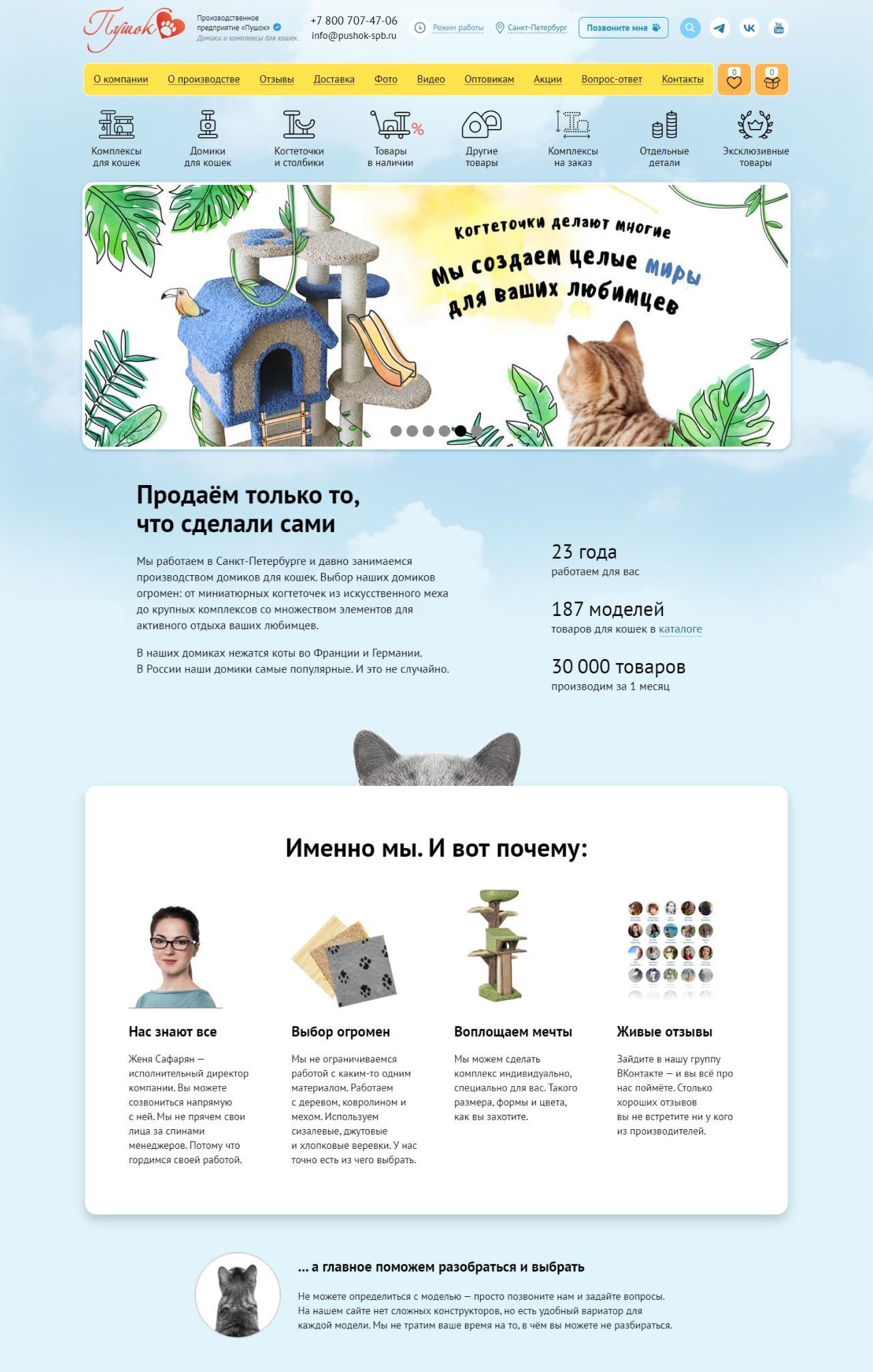 Так как на прежнем сайте у клиентов интернет-магазина не было возможности посмотреть фотографии домиков и комплексов для кошек (что значительно снижало конверсию): мы приняли решение провести фото и видео-съемки производства и всех товаров, предложенных на сайте.