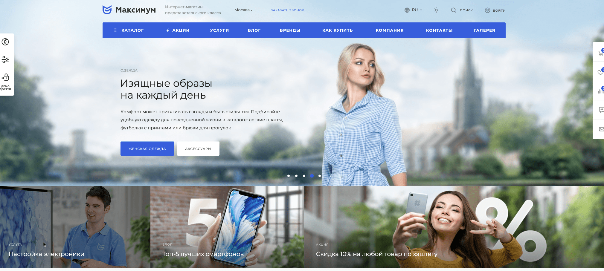 По итогу было принято решение о переезде сайта на новый шаблон CMS Bitrix Аспро Максимум.