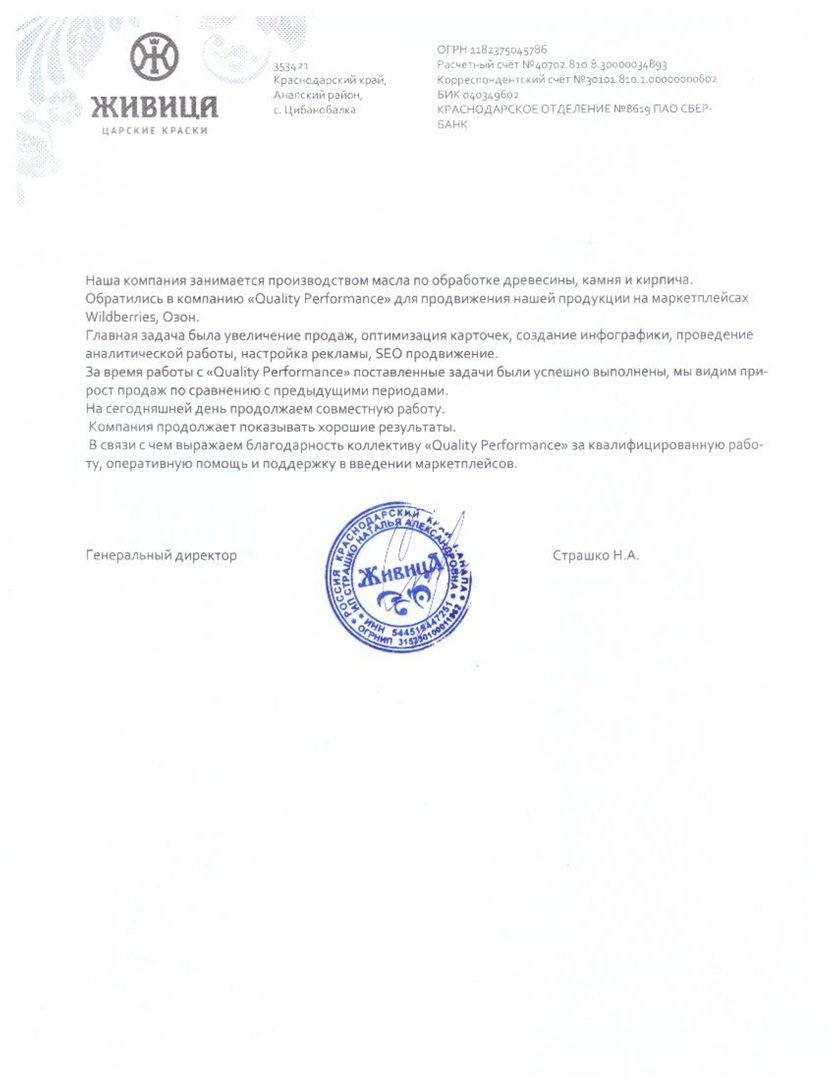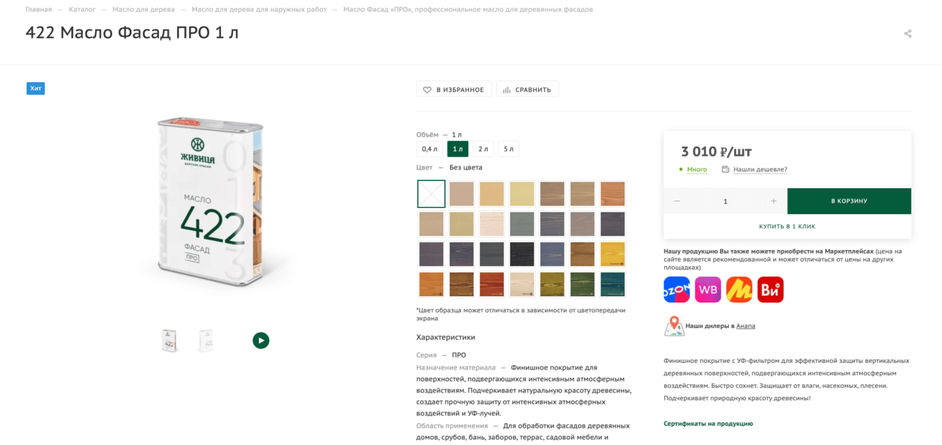 Наша компания занимается производством масла по обработке древесины, камня и кирпича. Обратились в компанию «Quality Performance» для продвижения нашей продукции на маркетплейсах Wildberries, Озон.