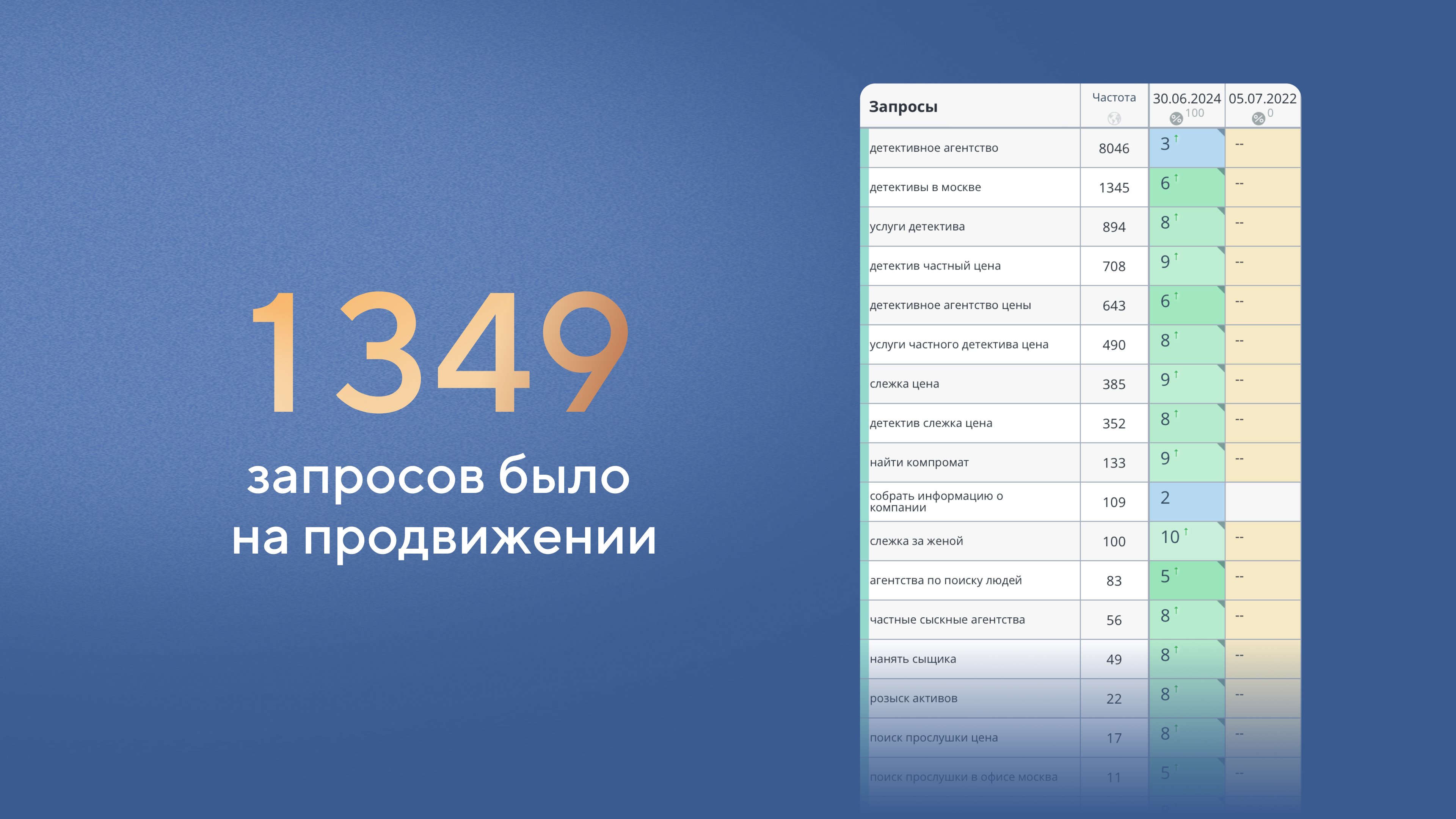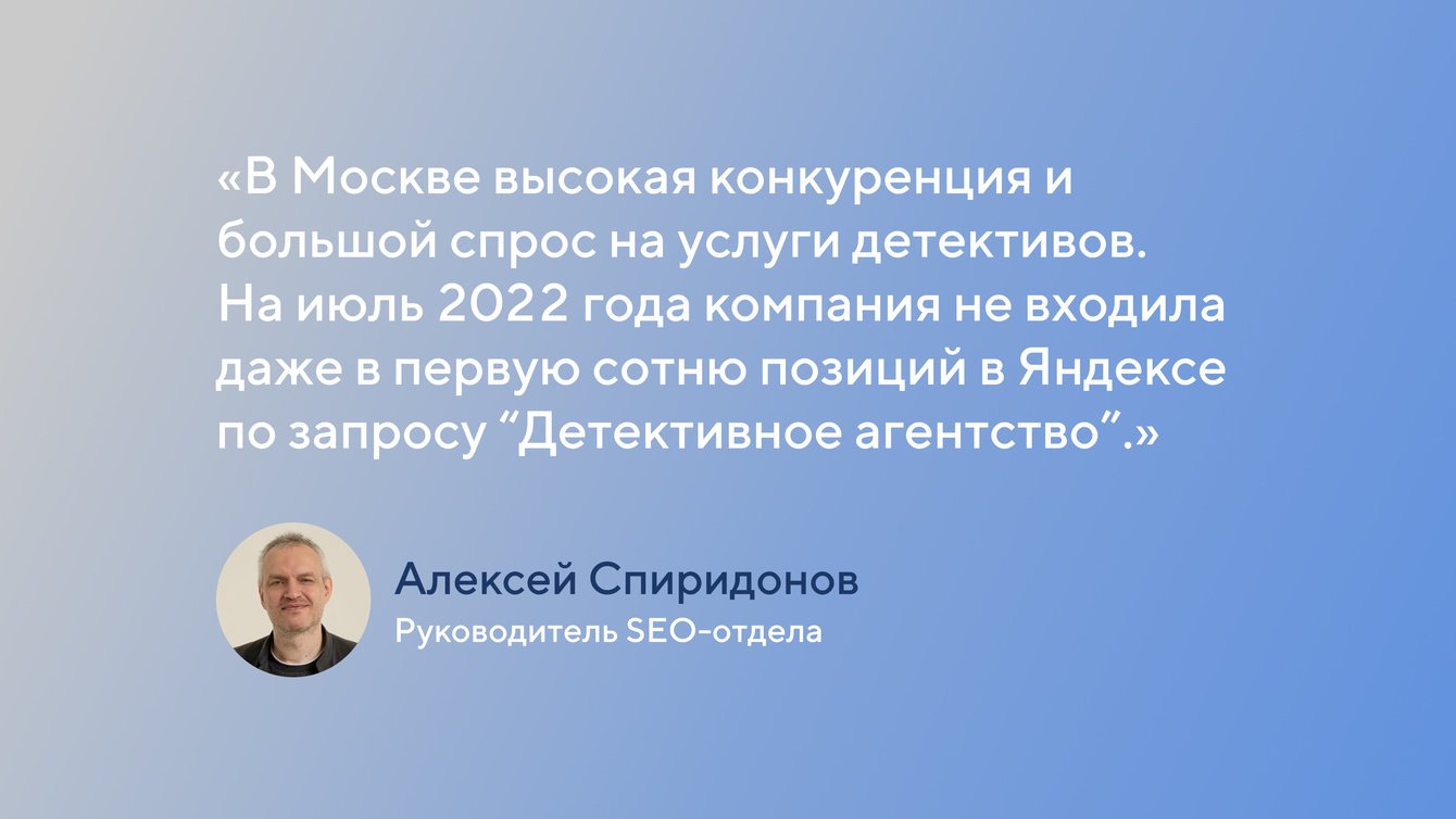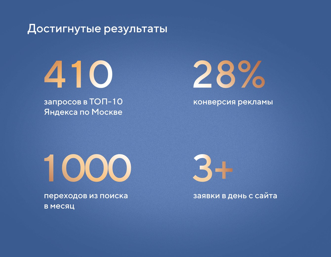 1. Выйти в ТОП-10 по Яндексу в Москве по целевым запроса
