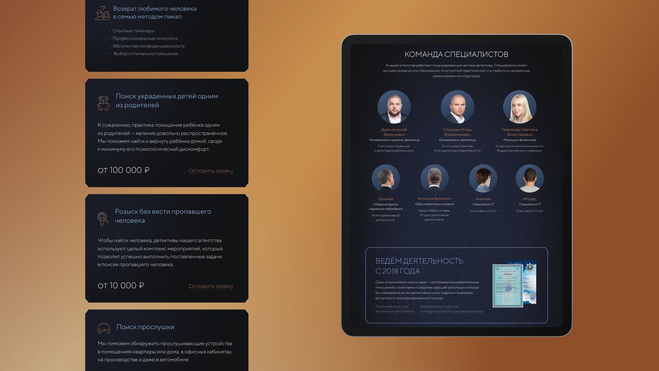 «Элита» — лицензированное детективное агентство, оперативно решающее сложные задачи информационно-сыскного характера.