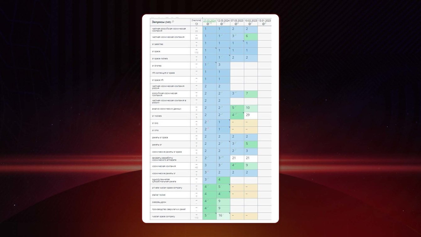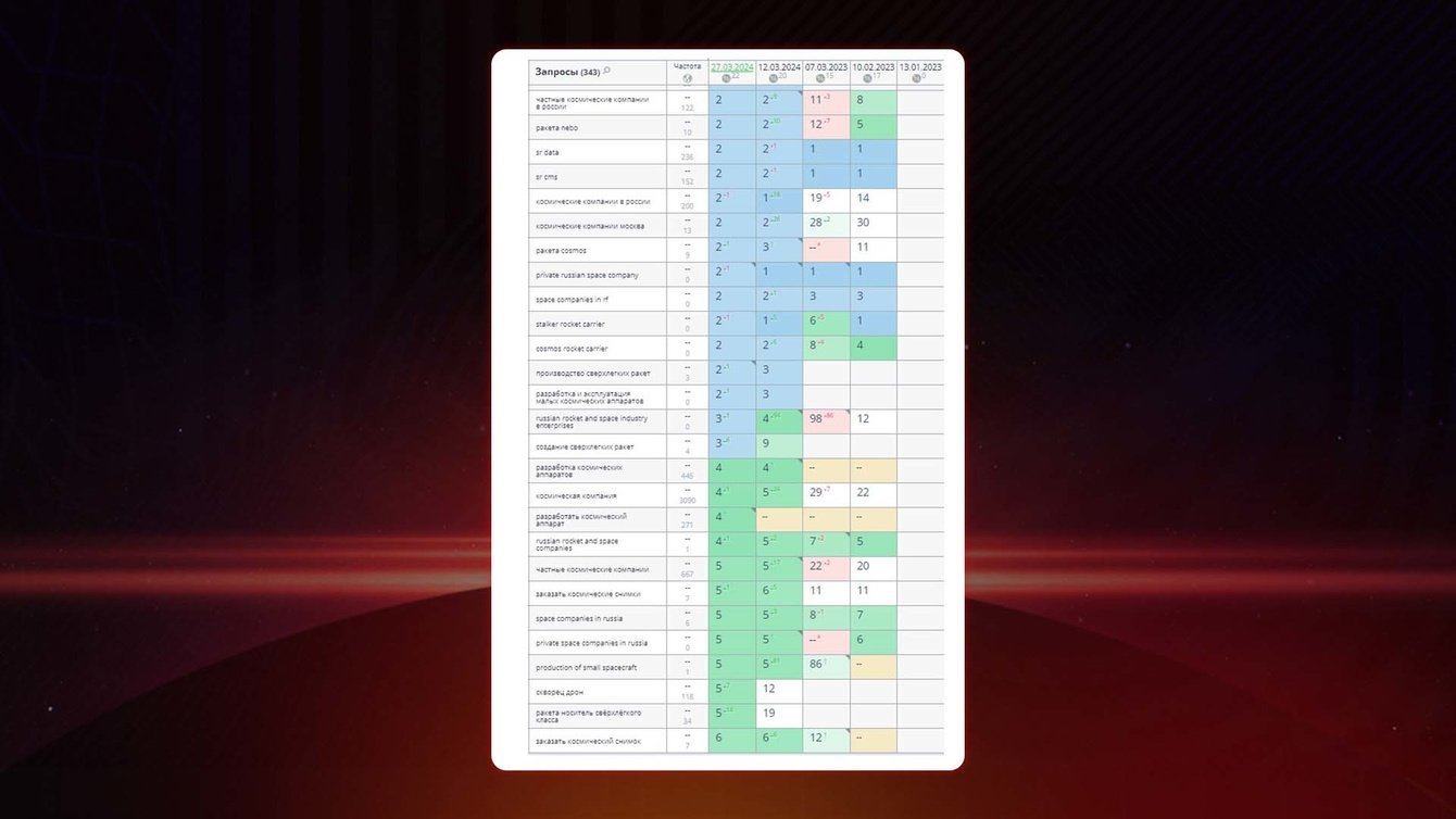 Рады, что за короткий срок удалось вывести сайт в лидеры по ключевым запросам в разных странах. Это был интересный опыт работы с инновационной космической компанией, и наш кейс показал, что хорошая SEO-оптимизация может "взлететь" так же быстро, как и ракеты SR SPACE.