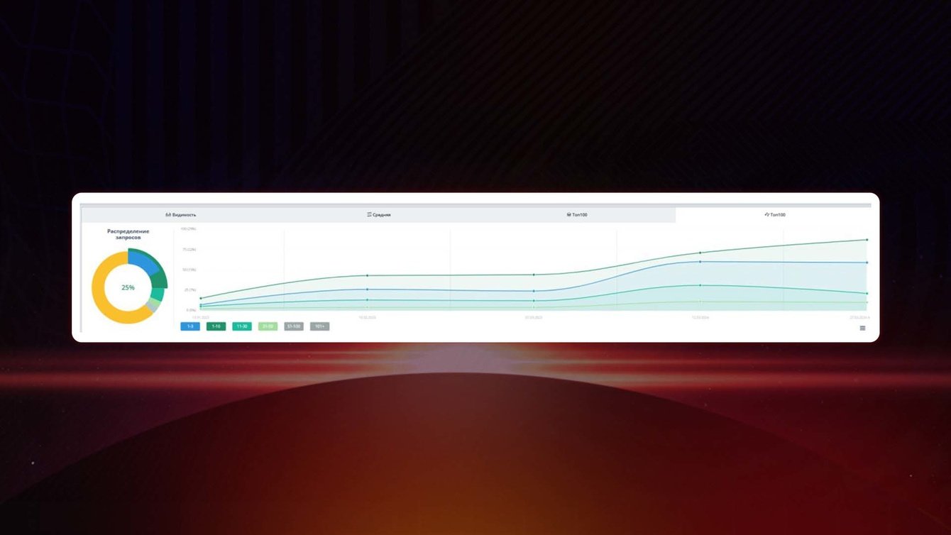 Видимость сайта выросла, о чём говорят взлетевшие позиции. 18% запросов в ТОП-3, в ТОП-10 — 25%.