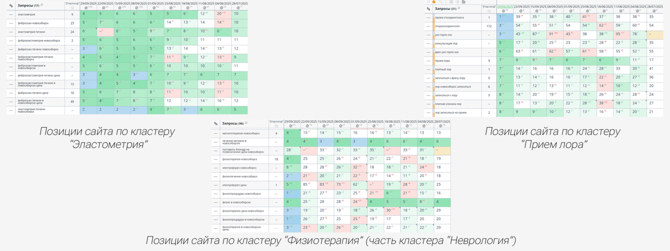 После загрузки текстов и обновления страниц в поиске мы проверили результаты. Так как задачи по сути было 2: вывести запросы в ТОП-10 и попасть в нейровыдачу, то отслеживали оба этих показателя.