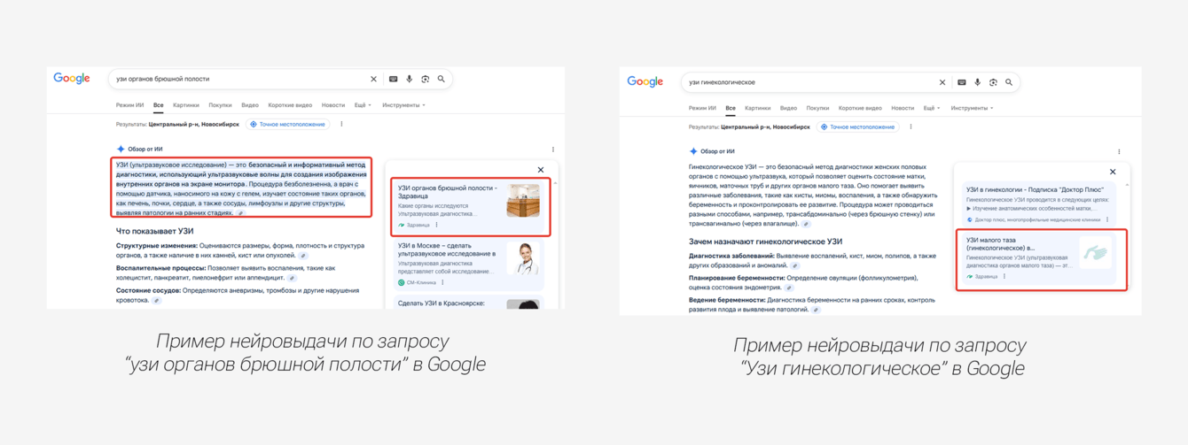Снижающийся информационный трафик сразу навел нас на мысль о том, что пользователей перехватывает блок нейровыдачи в поисковых системах, и, не найдя сайт нашего заказчика в блоке ответов от нейросети, мы решили, что нужно постараться в него попасть, а заодно обкатать новый подход к контенту на сайте.