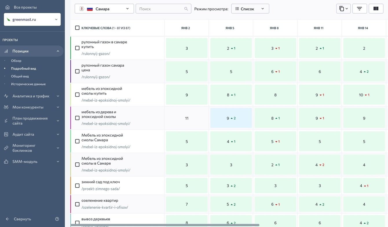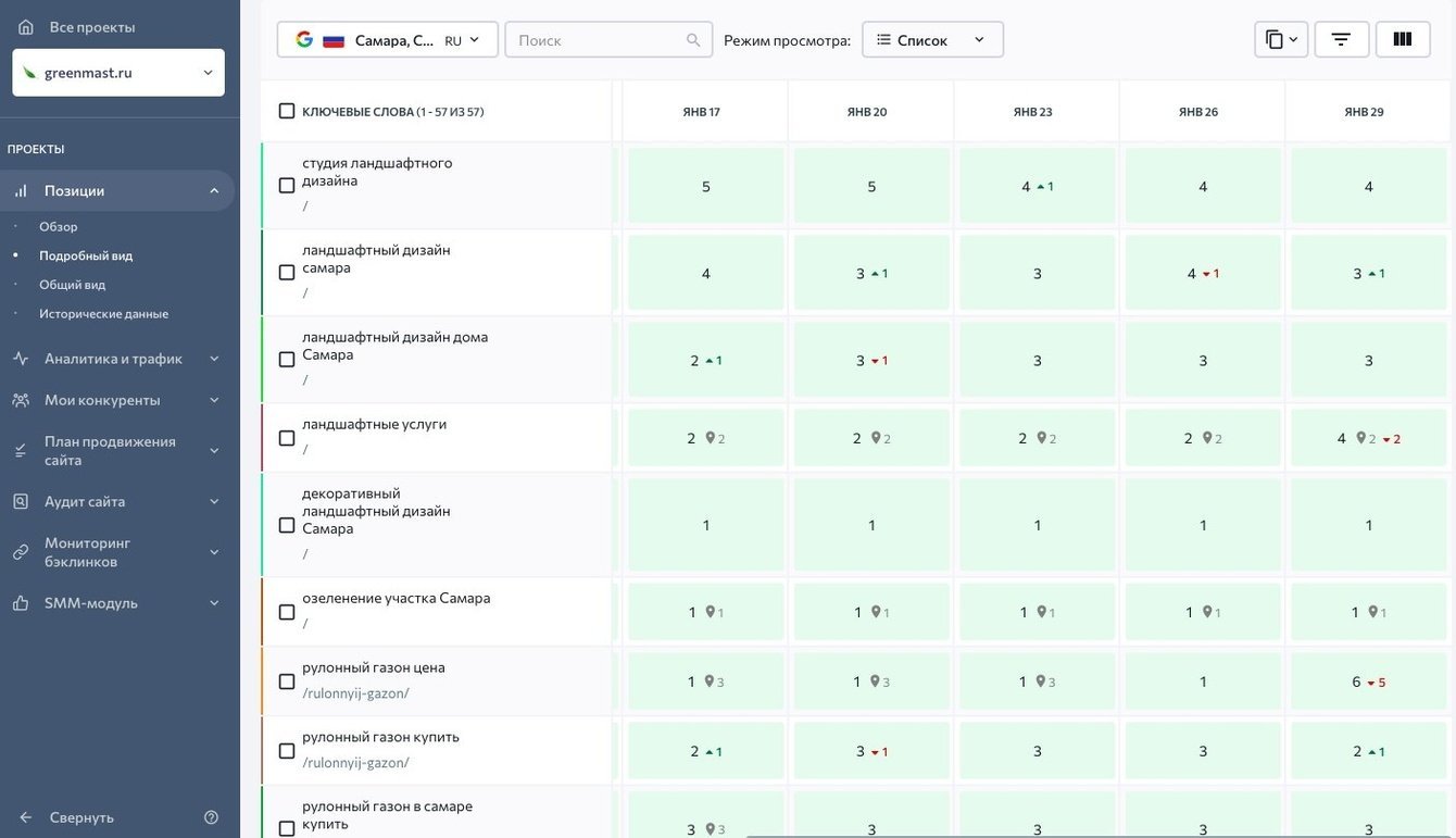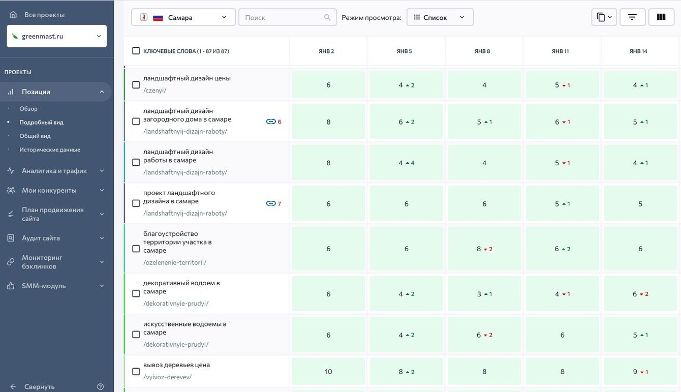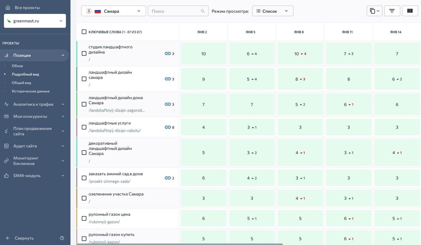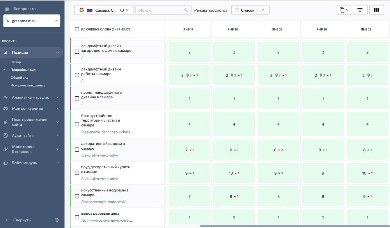 Вывод сайта в ТОП Google и Яндекс по основным направлениям услуг: ландшафтный дизайн, уход за участком, озеленение и благоустройство, декоративные водоемы.