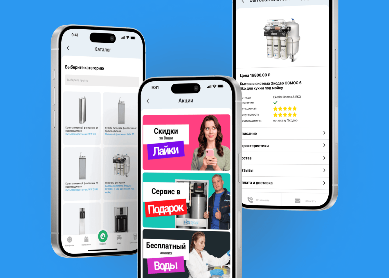 Было важно получить от пользователей обратную связь. У людей был запрос на удобство обслуживания. До разработки приложения каналами связи были звонки на общую линию, а также заявки на официальном сайте. А приложение позволило компании проще и чаще получать обратную связь от пользователей, предоставить удобный сервис напоминаний о смене расходников, вызове мастеров. И при этом сократило расходы на кол-центр.