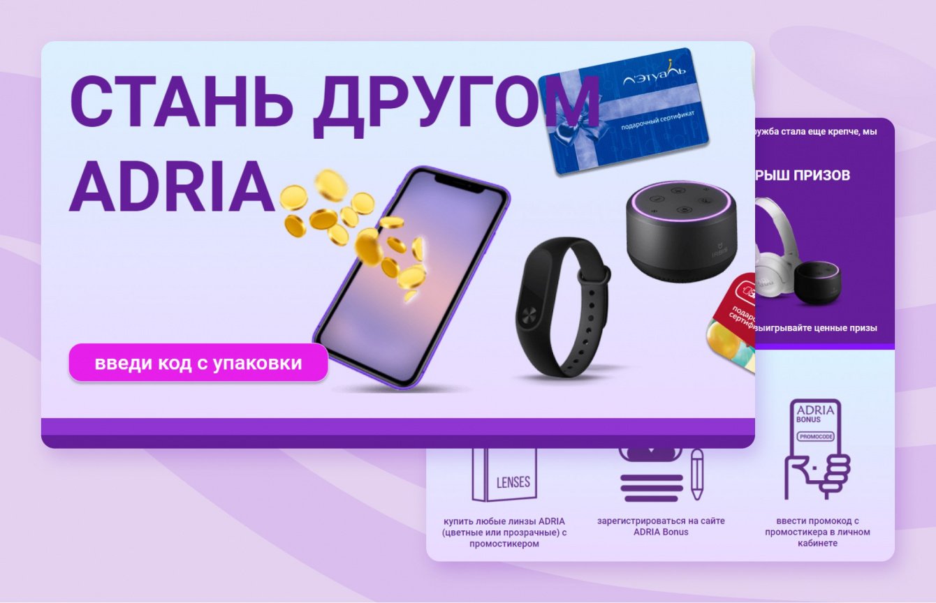 Клиент: AdriaCats — бренд цветных и прозрачных контактных линз с большим ассортиментом. AdriaBonus — программа лояльности от AdriaCats.