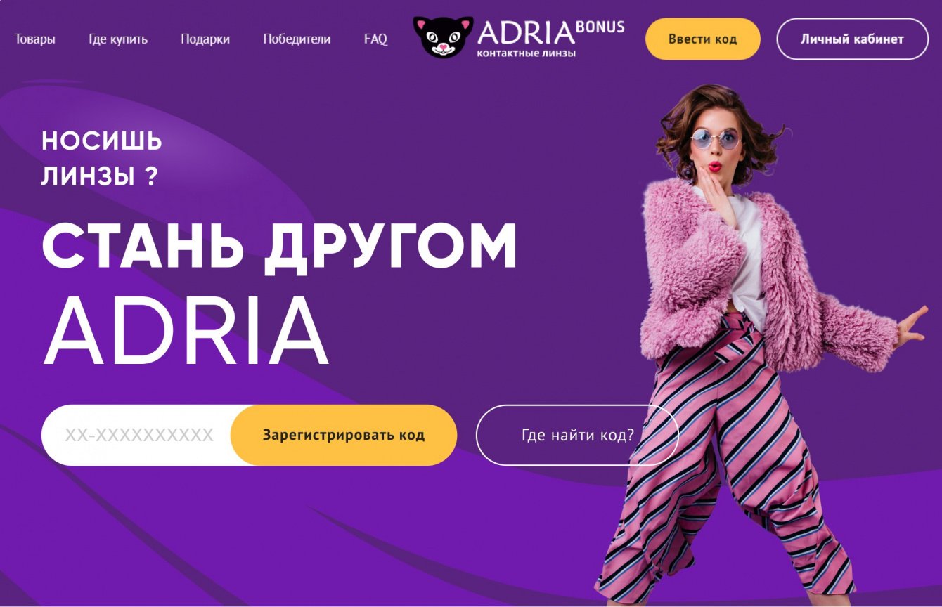 Клиент: AdriaCats — бренд цветных и прозрачных контактных линз с большим ассортиментом. AdriaBonus — программа лояльности от AdriaCats.