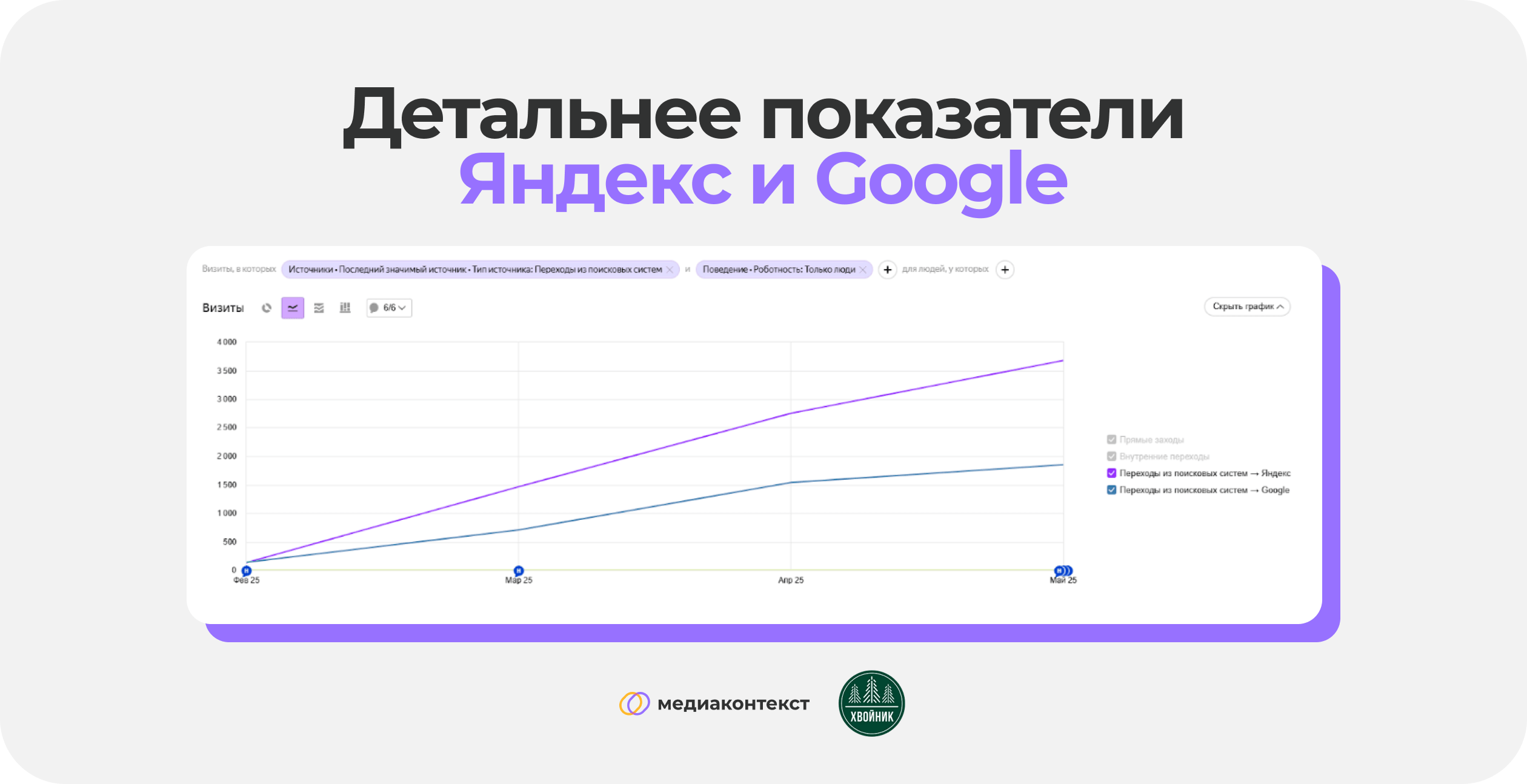 Приведем данные из разных источников по поисковому трафику за период продвижения.