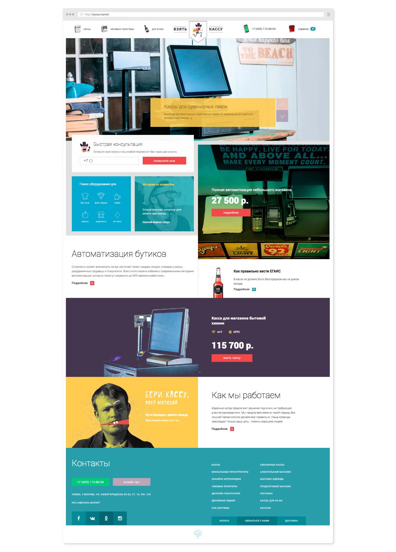 Перед нашей командой стояла задача разработать интернет-магазин для продажи кассового оборудования, который с первых секунд будет завоевывать внимание, располагать к себе нестандартным дизайном, юмором и удобным интерфейсом.