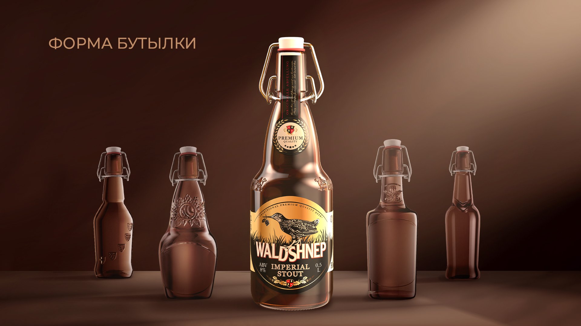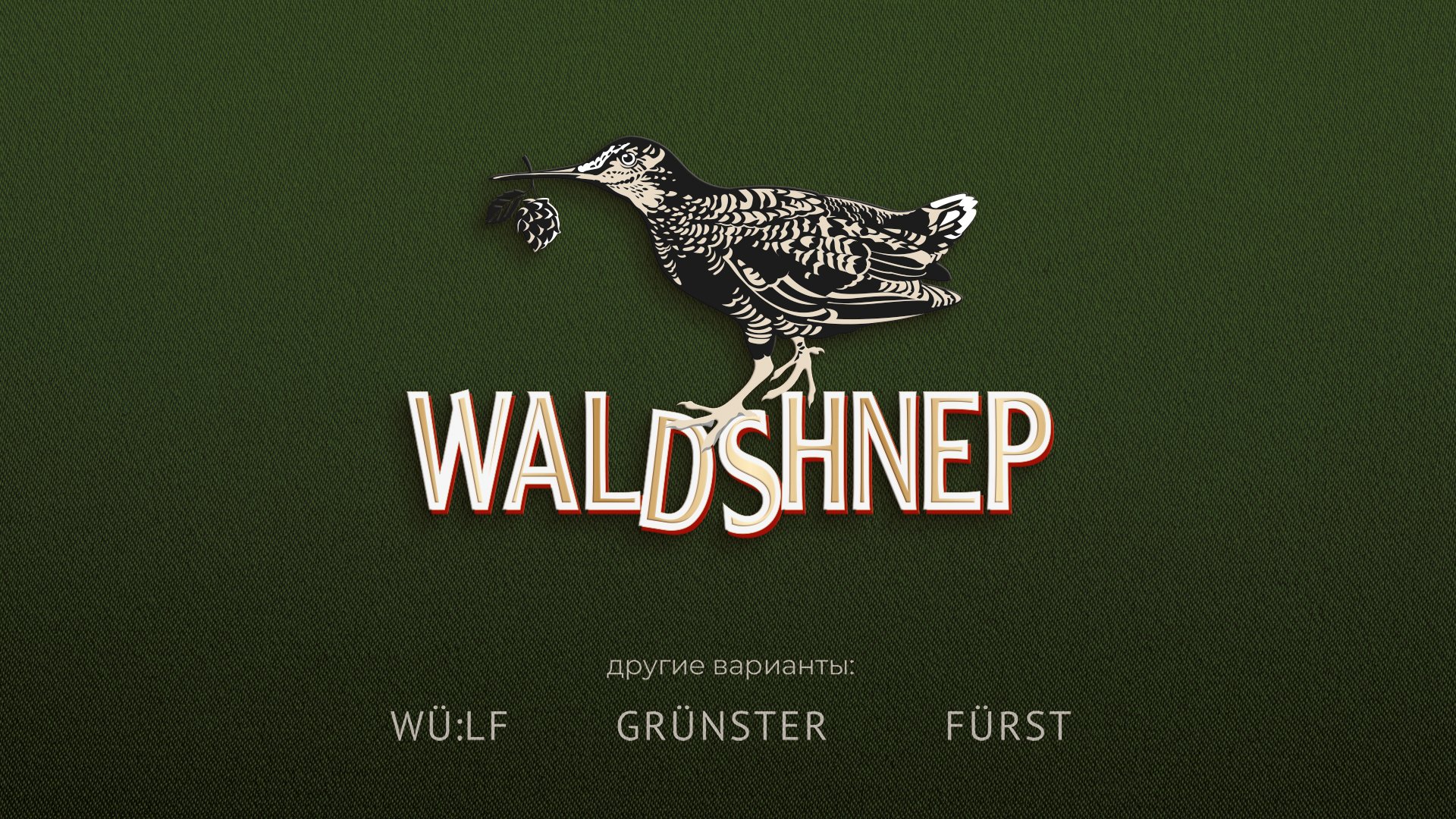 Мы предложили и протестировали 13 вариантов названия. Победил Waldshnep — название с немецким звучанием, отсылающее к вальдшнепу (нем. Waldschnepfe — лесной кулик), популярному объекту охоты в Европе. Охота, аристократия, изыск — всё это усиливает премиальный характер бренда. Также название это дань уважения месту, где расположен завод: село Чириково, окружённое полями и лесами, изобилует птицами, в том числе здесь обитает и вальдшнеп. Это создало дополнительную метафору — связь с природой, аутентичностью и тонким вкусом.