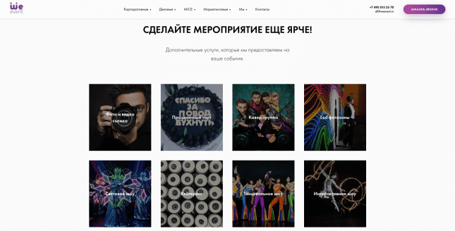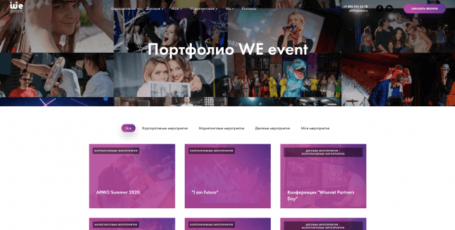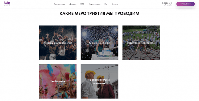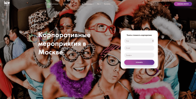Компания WE event – агентство по организации деловых, корпоративных и маркетинговых мероприятий. В кратчайшие сроки разработать сайт и начать привлекать первых клиентов.