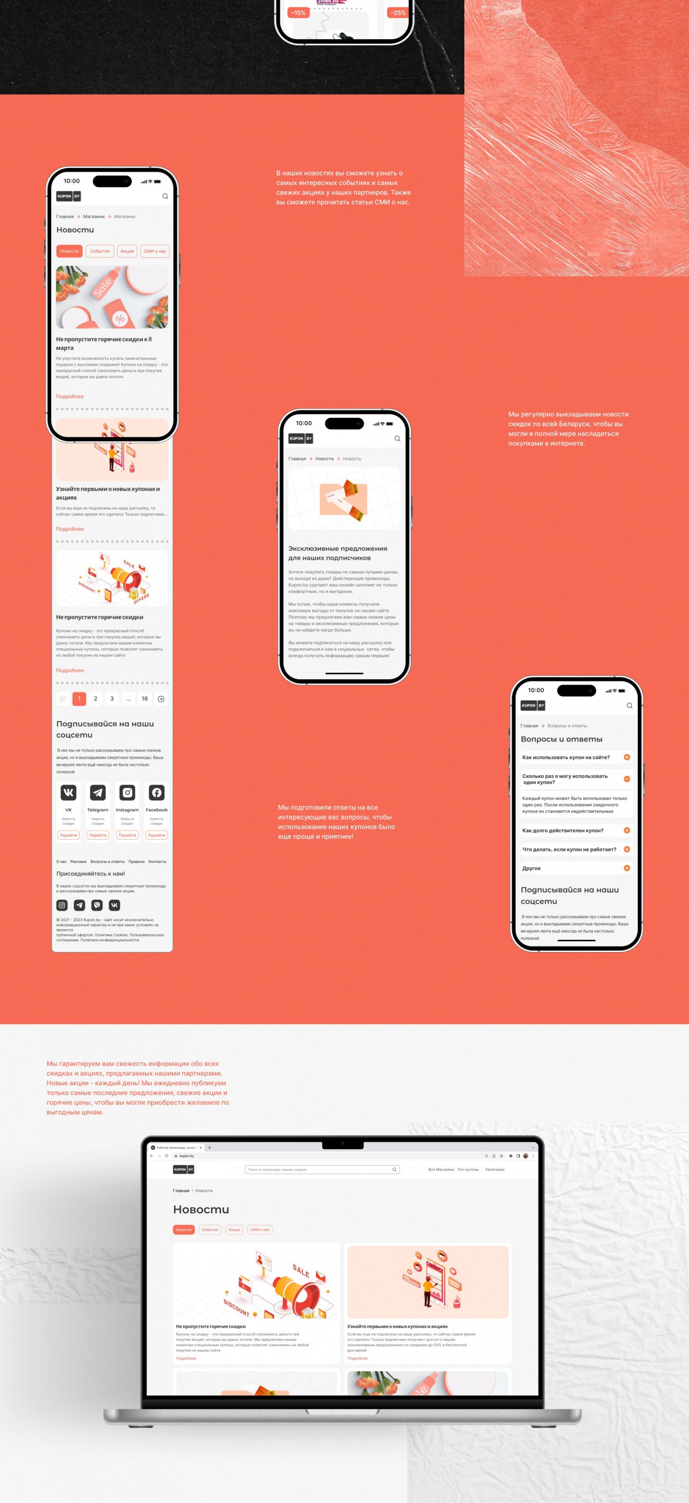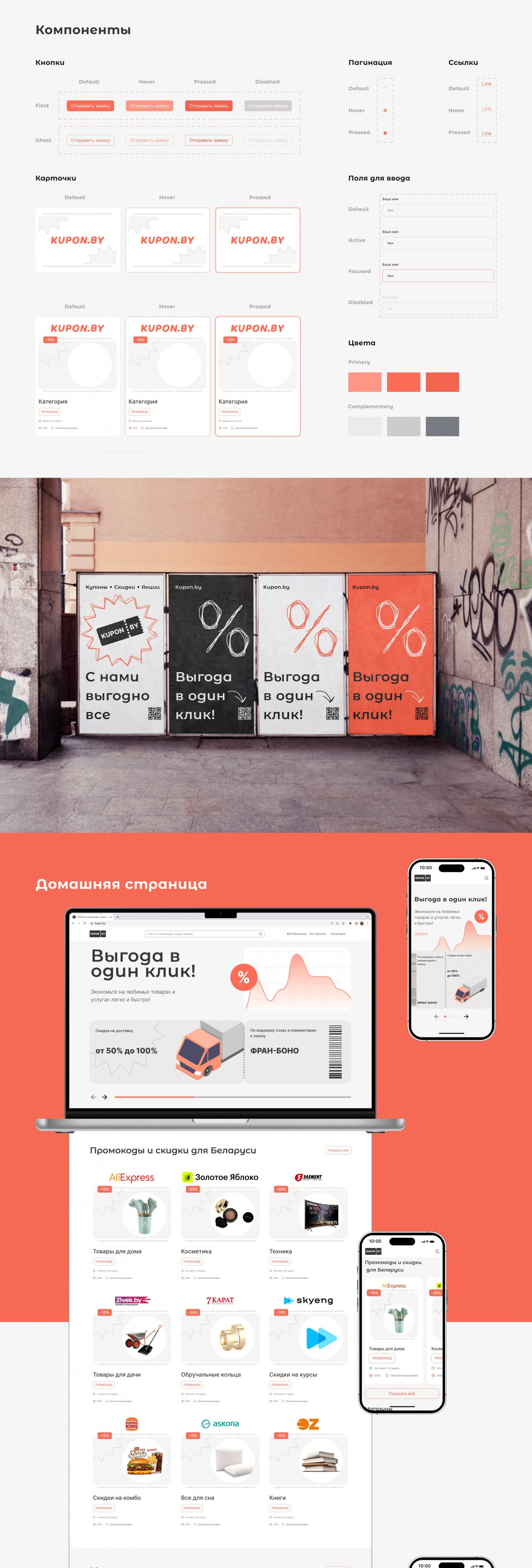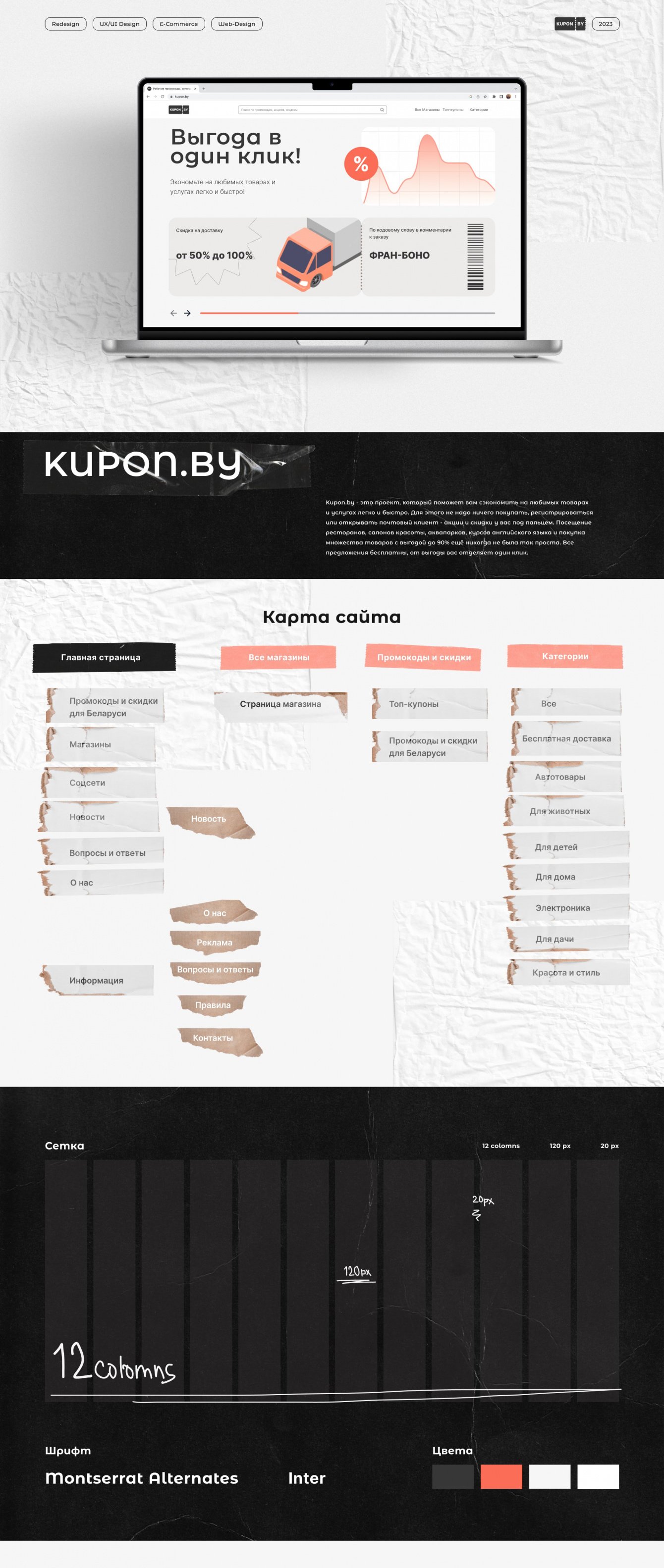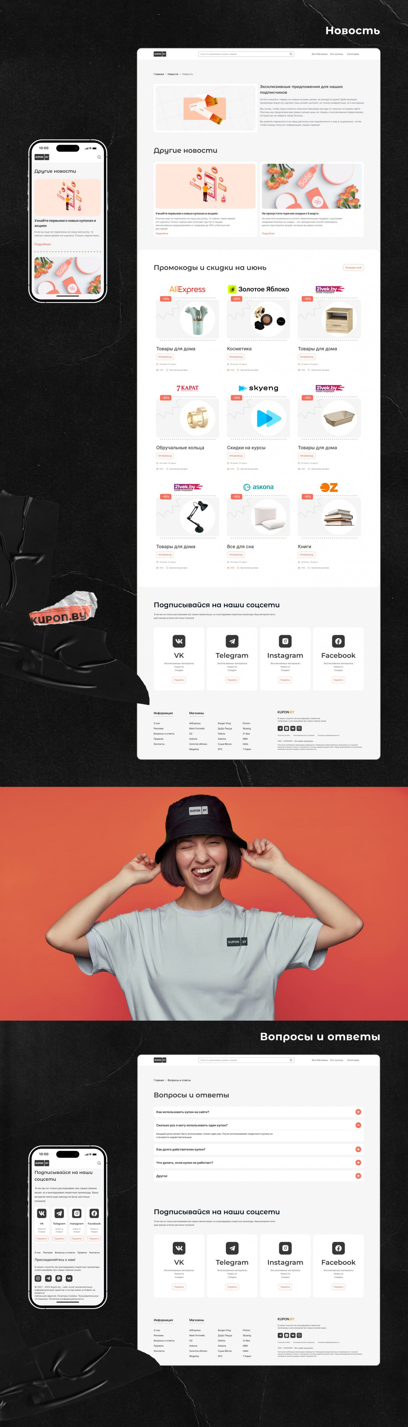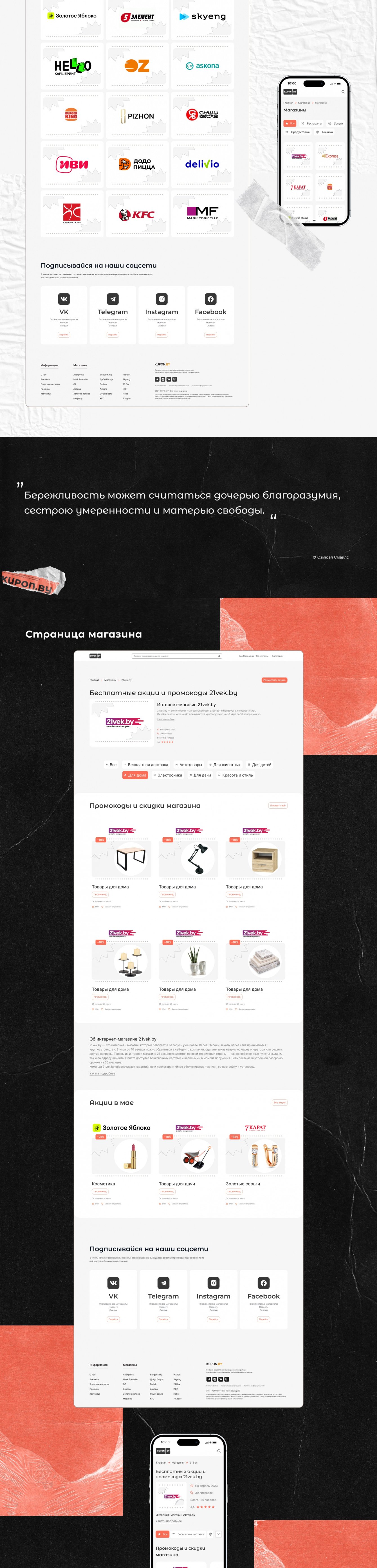 The Kupon project has a website where you can learn useful information about discounts, promotions and get promotional codes for products of interest. The site had an outdated design, the navigation structure was difficult to understand. The site could't adequately provide the user with all the necessary information.