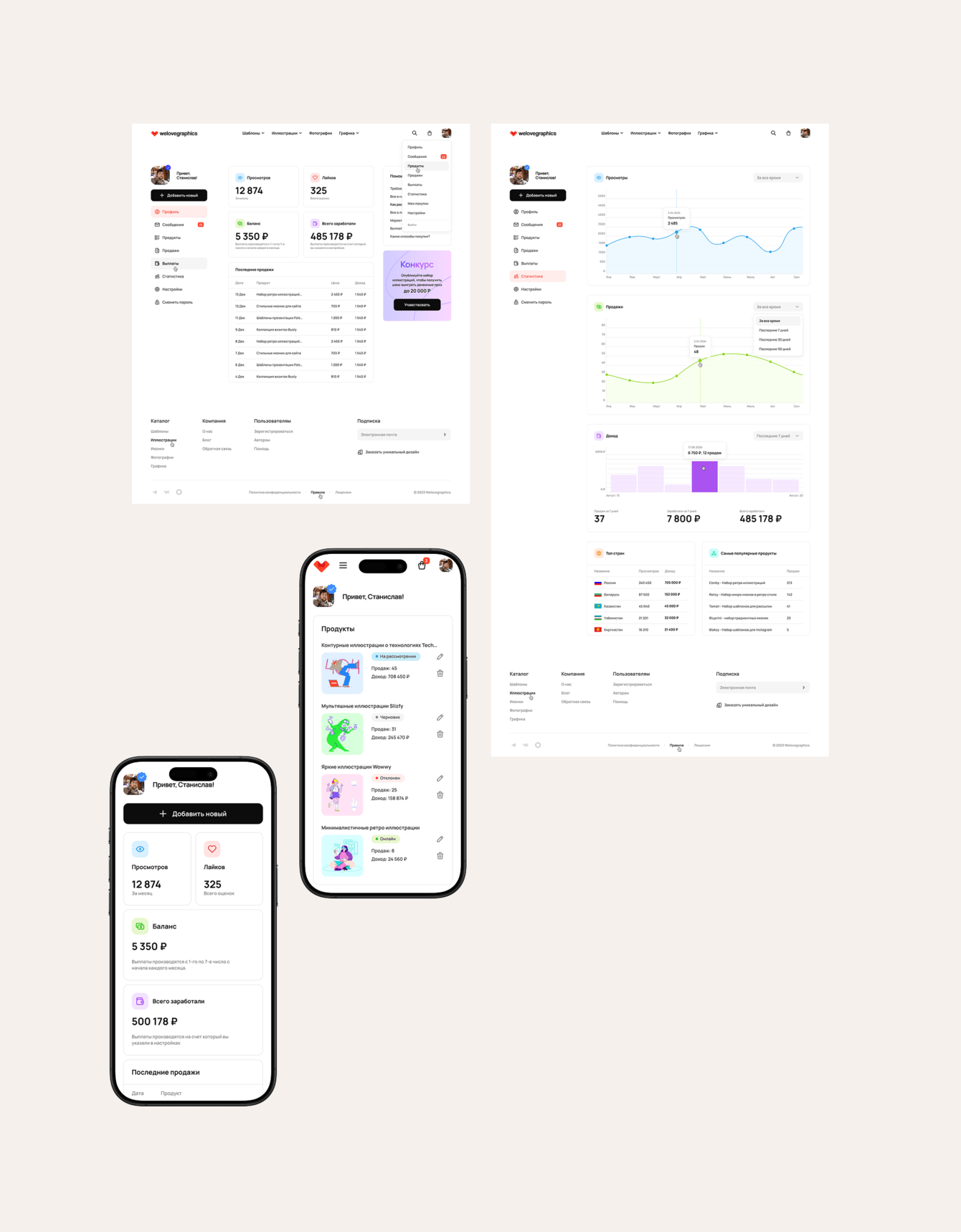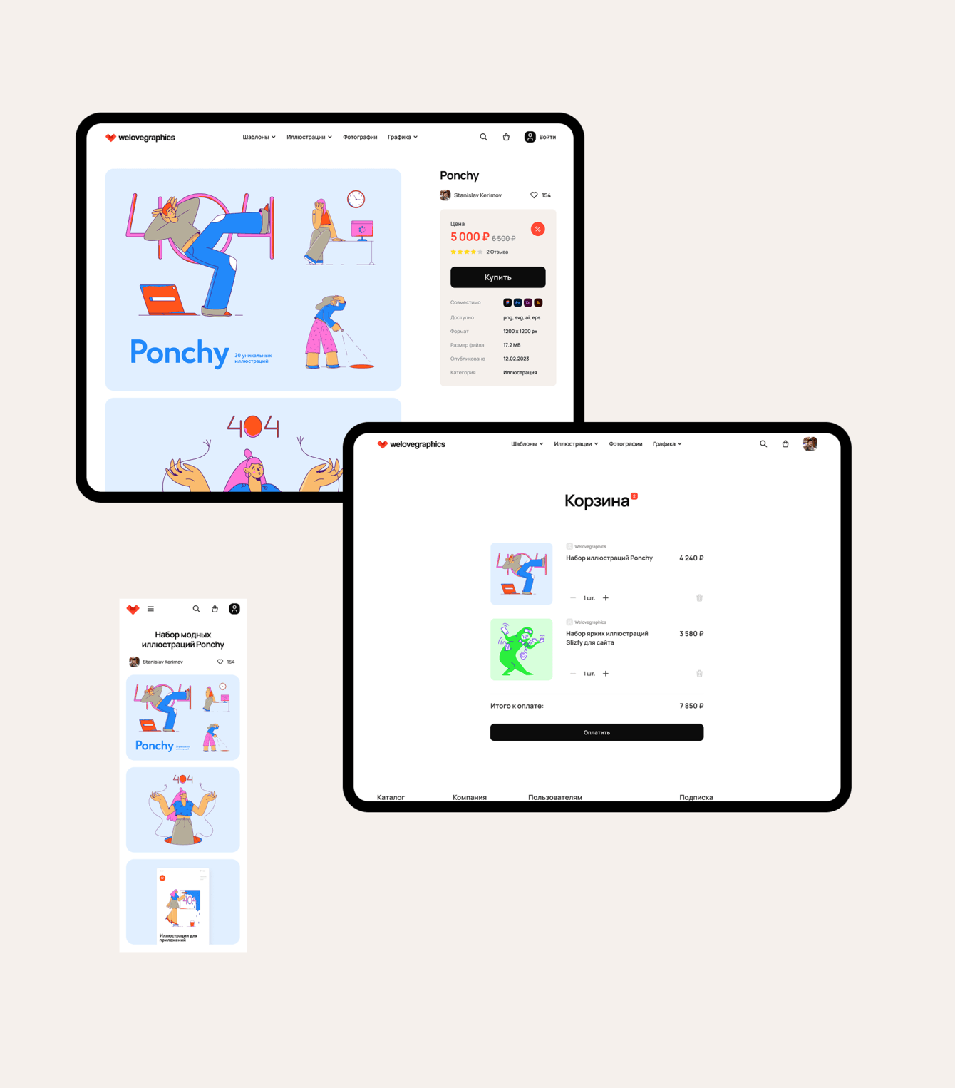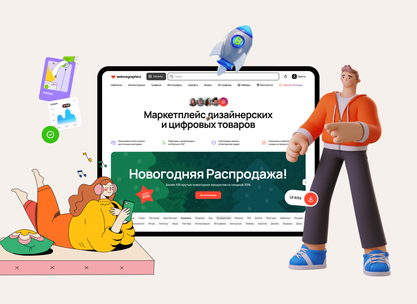 Мы разработали современный маркетплейс цифровых дизайн продуктов, на котором авторы могут разместить свои работы, а пользователи – купить или заказать доработку. Сервис развивается в сторону интеграции различных платформ ИИ, которые дадут больше возможностей для создания качественного графического контента и другого функционала.
