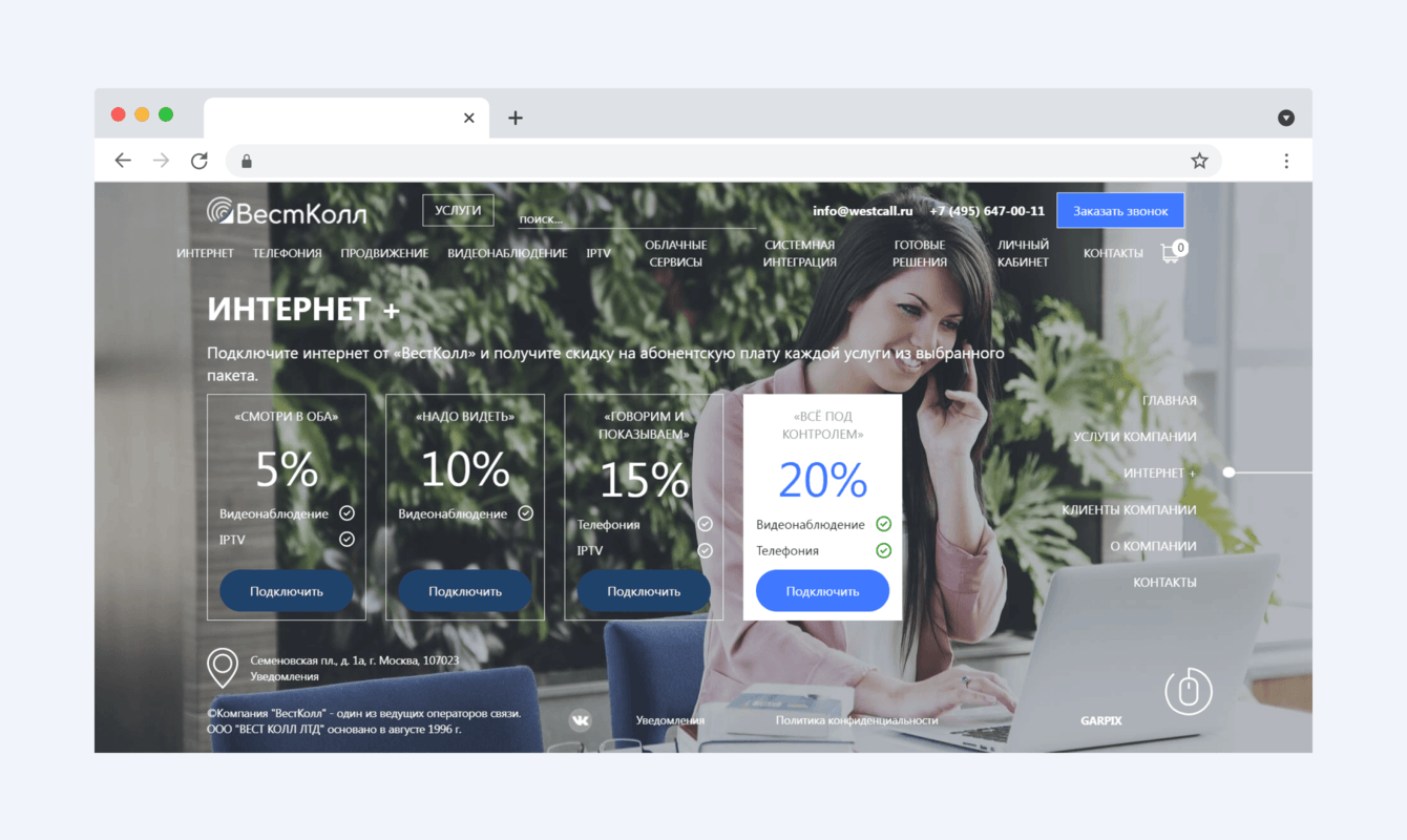 1. Максимально подробно и наглядно показать потенциальному клиенту, какие возможности предоставляет компания «WestCall», снабдить сайт формами обратной связи, что позволит оперативно работать с клиентом.