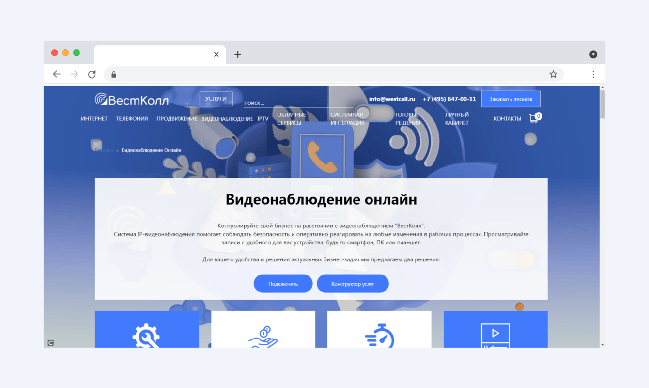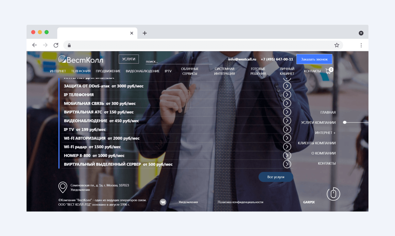«Сайт «WestCall» - качественный корпоративный ресурс. В нём нет ничего лишнего. Нет перегруженности и, самое главное лишних эффектов. Всё строго и по делу. Со стороны Заказчика всегда были сотрудники, которые могли оперативно предоставить необходимую информацию. Несмотря на то, у компании действительно большое количество типов предоставляемых услуг, а также множество подразделений, коллеги оперативно сводили и предоставляли информацию. Важно то, что руководитель проекта со стороны Заказчика, четко понимал потребности каждого из подразделений. Поэтому мы тщательно подбирали контент, утверждали эффекты и структуру будущего ресурса. И можем с уверенностью заявить, что это было продуктивное взаимодействие».
