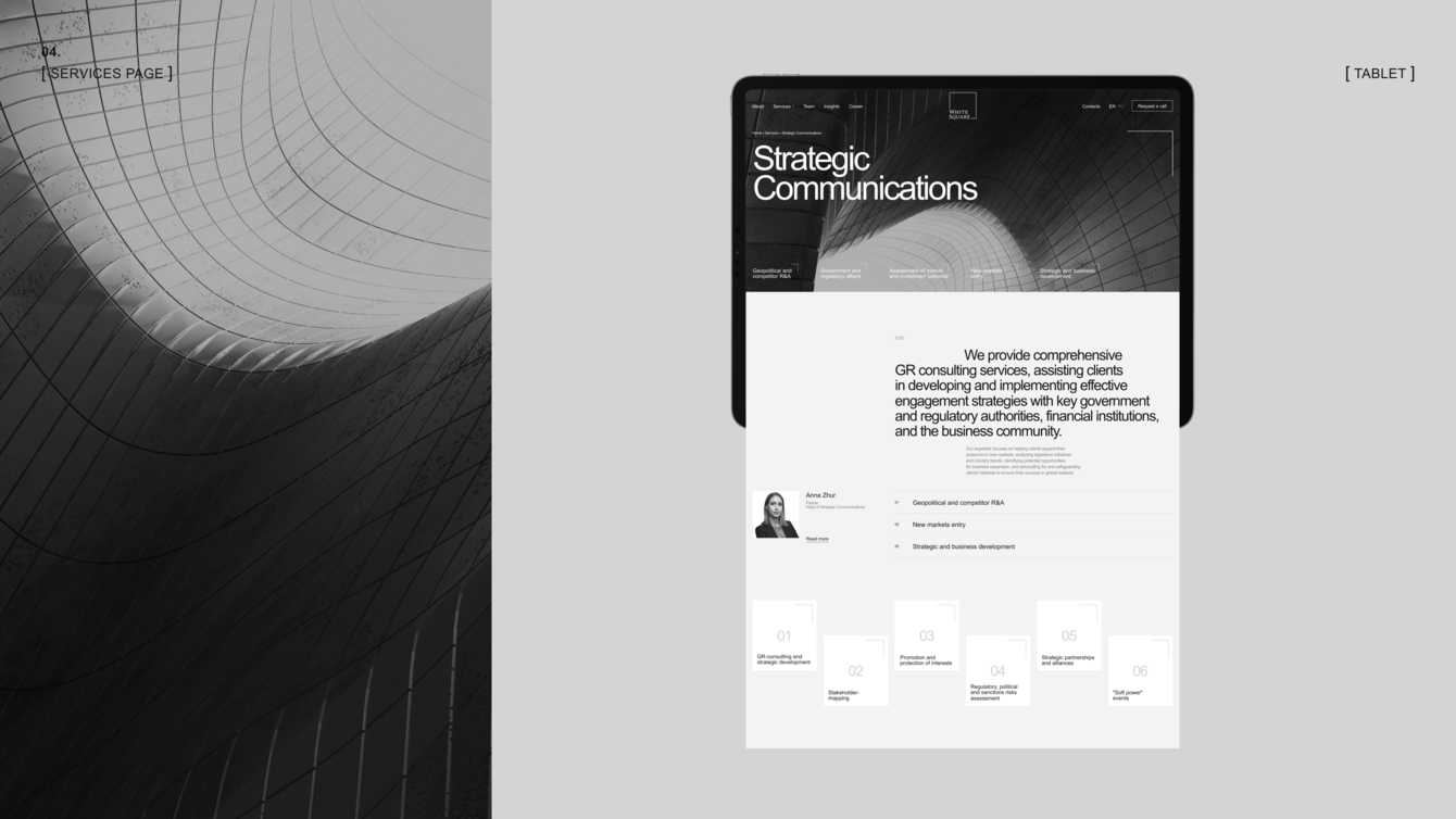 Консалтинговая компания "White Square" решила создать веб-сайт для улучшения своего онлайн-присутствия и привлечения новых клиентов. Сайт должен предоставлять информацию о предлагаемых компанией услугах, команде и т.д.