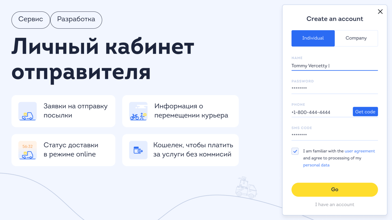 — Создали личные кабинеты для курьера и отправителя.