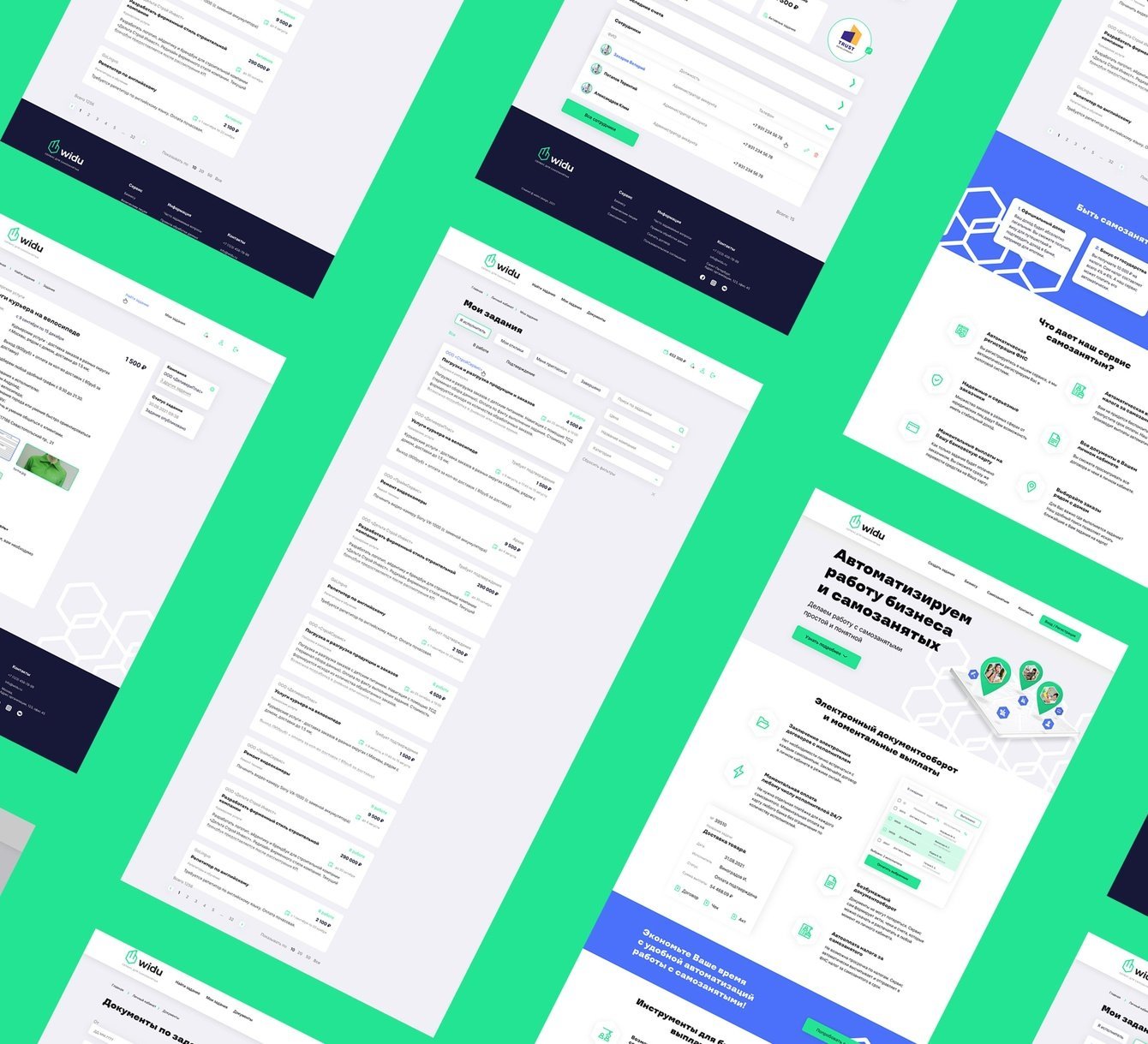 Widu предлагает быстрый поиск самозанятых исполнителей и берет на себя ведение всей отчетности и подачу необходимых документов в ФНС.