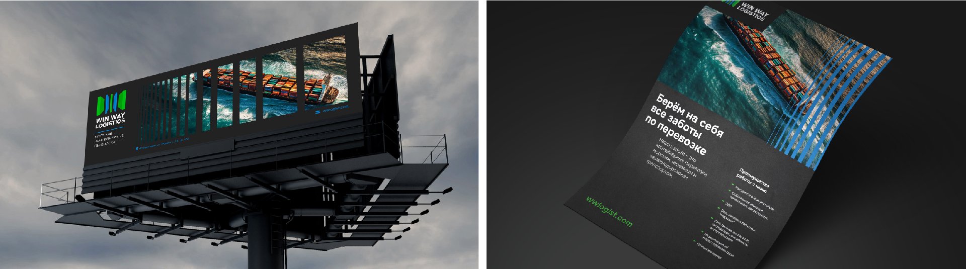 Прямые ассоциации с логистикой мы усилили косвенными — через цветовую палитру, шрифты и фирменные элементы подсветили технологичность, современность и динамику компании.
