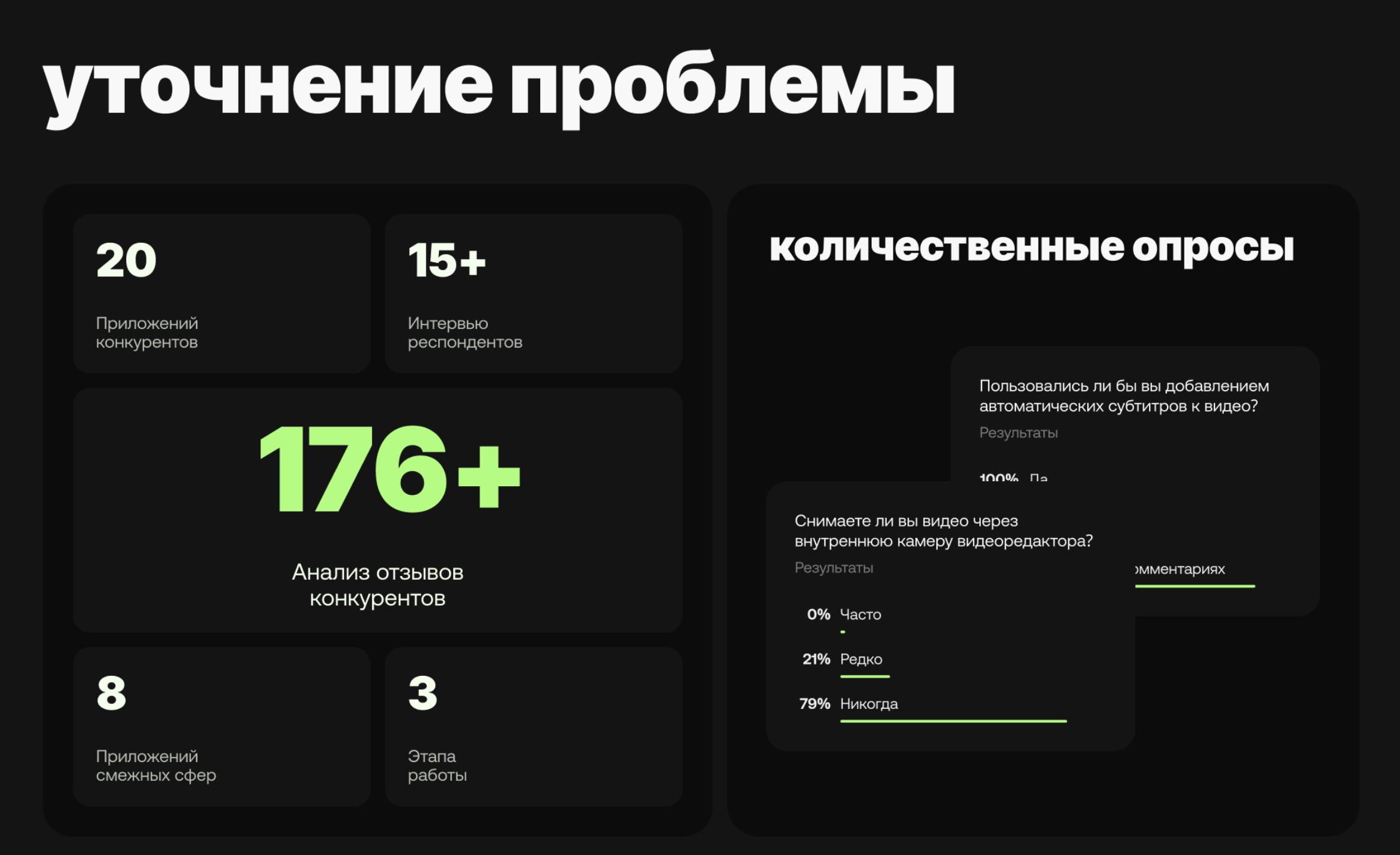 Разработка мобильного видеоредактора с учетом данных исследований и обратной связи тестовой группы пользователей.