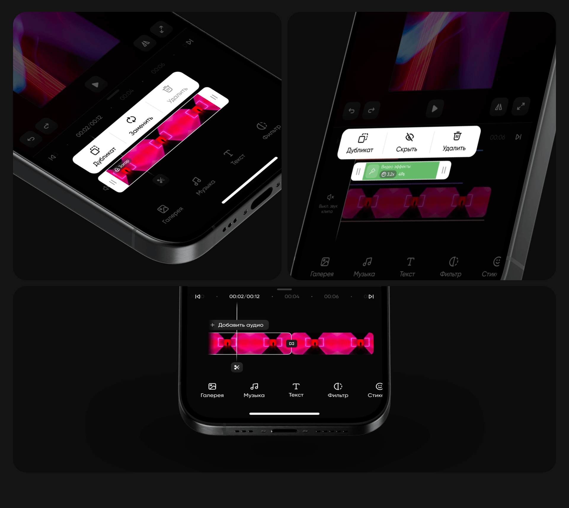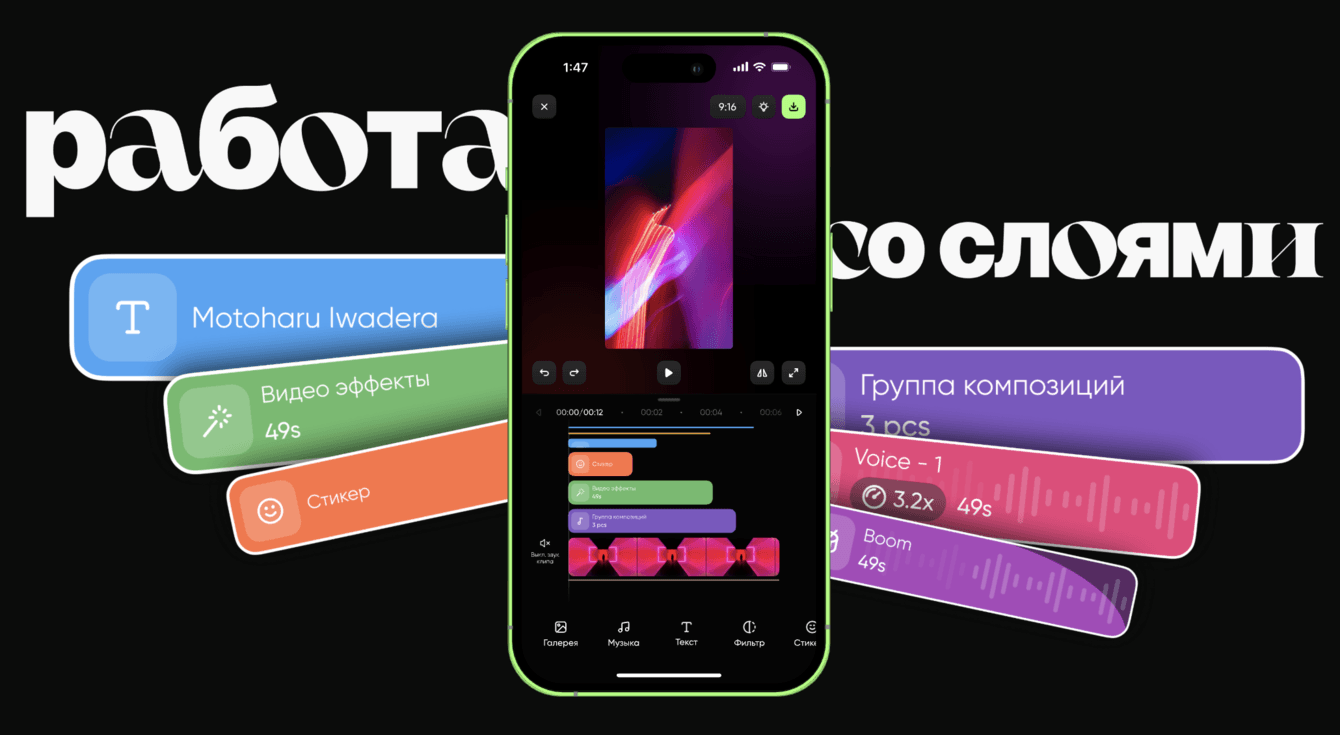 - Создать продукт с интуитивно понятным интерфейсом и широким выбором инструментов для быстрого и удобного создания видеороликов.