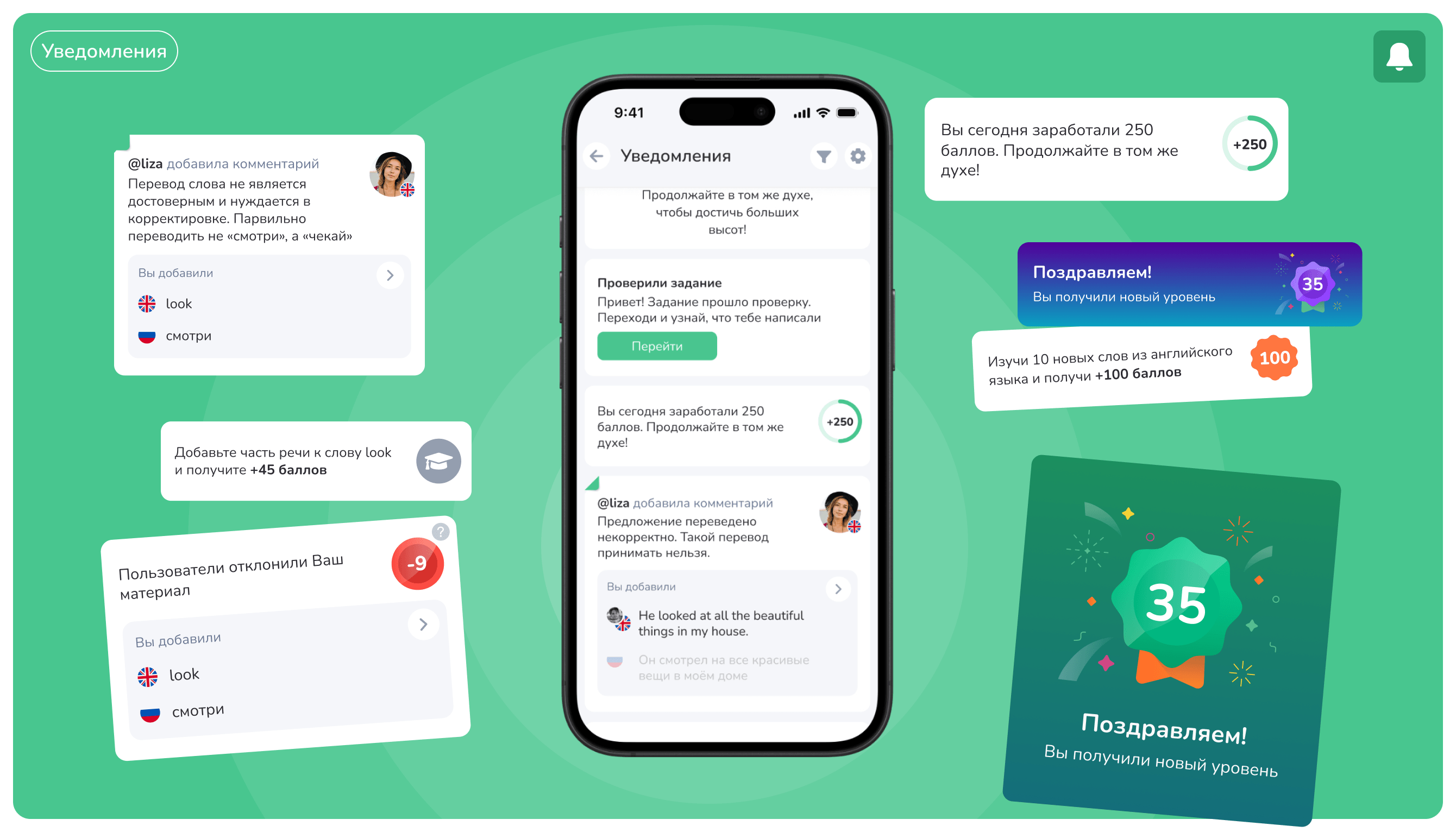 — Уведомления — ненавязчивые, но эффективные, чтобы пользователь ничего не пропустил;