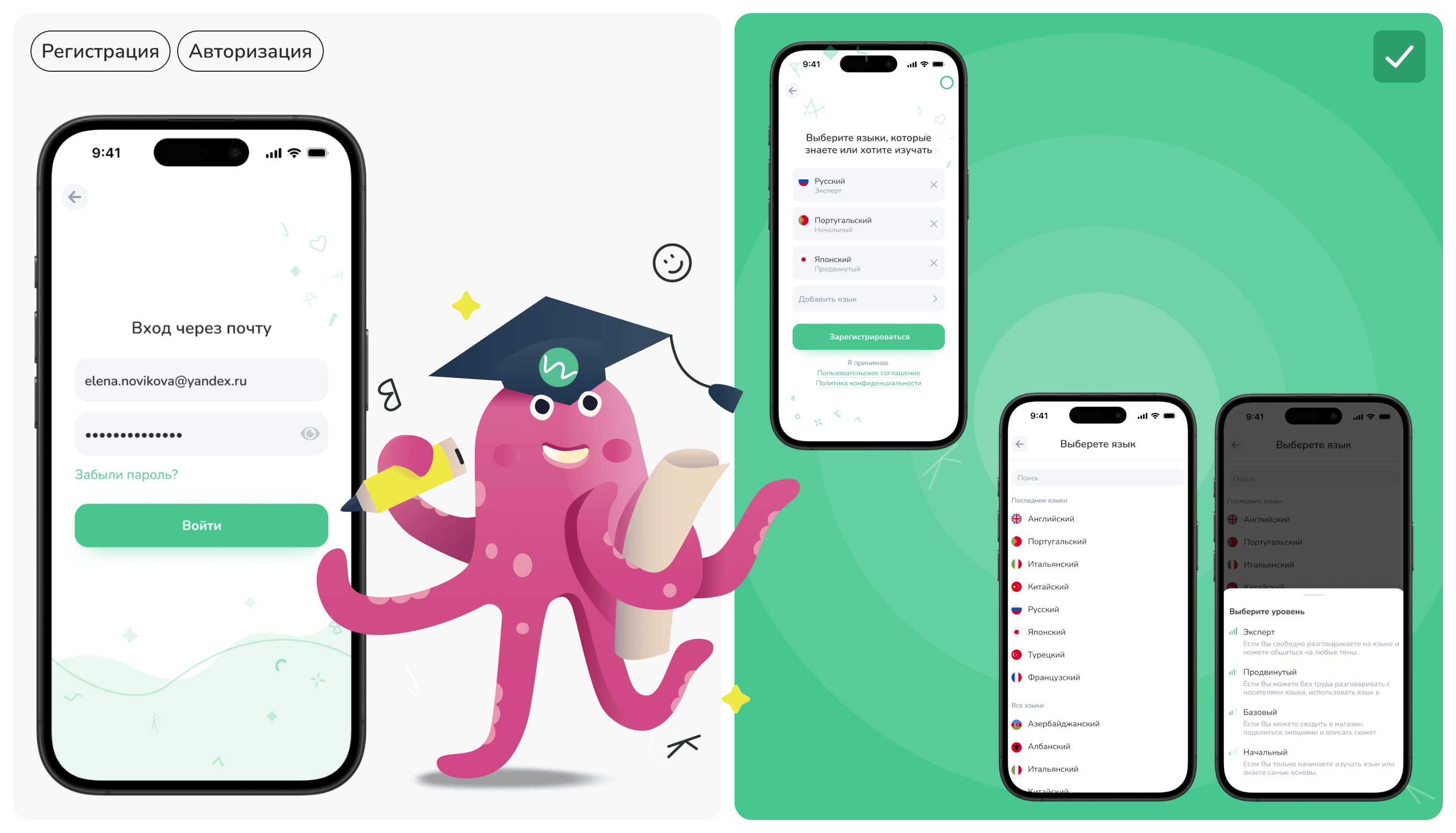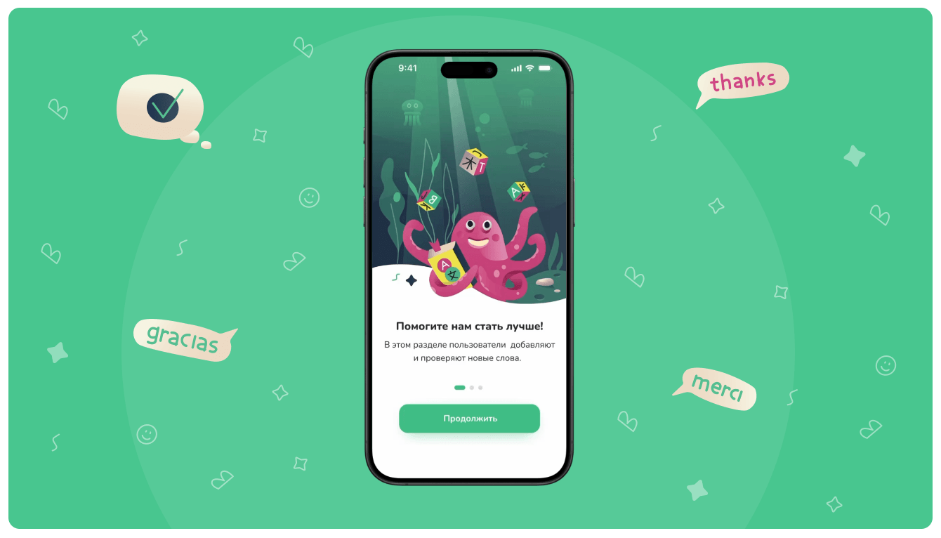 С осьминожком, анимациями и продуманным интерфейсом изучение языка становится не просто полезным, но и вдохновляющим процессом.