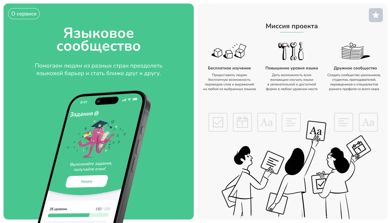 Приложение также несет социальную миссию. Одно из его ключевых преимуществ — возможность не просто соревноваться с другими, но и общаться с носителями языка.