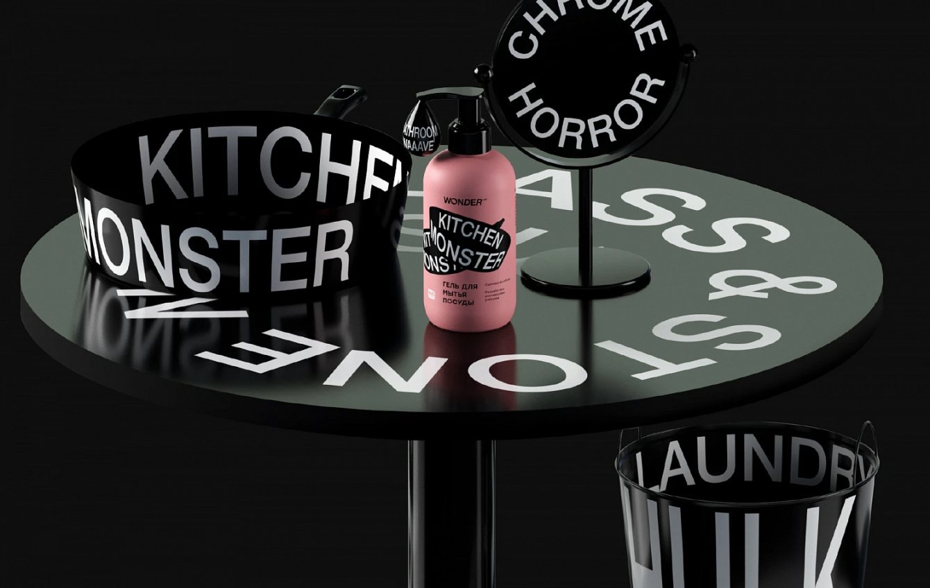 — Для каждого SKU мы нарисовали иллюстрации, которые визуально отразили, для чего нужно то или иное средство — комментирует Никита Иванов, дизайн-директор Depot. — А типографика своей формой и расположением демонстрирует направление мытья. Например, на изображении стола буквы идут по кругу — ведь именно такие движения мы и совершаем, когда моем поверхности.