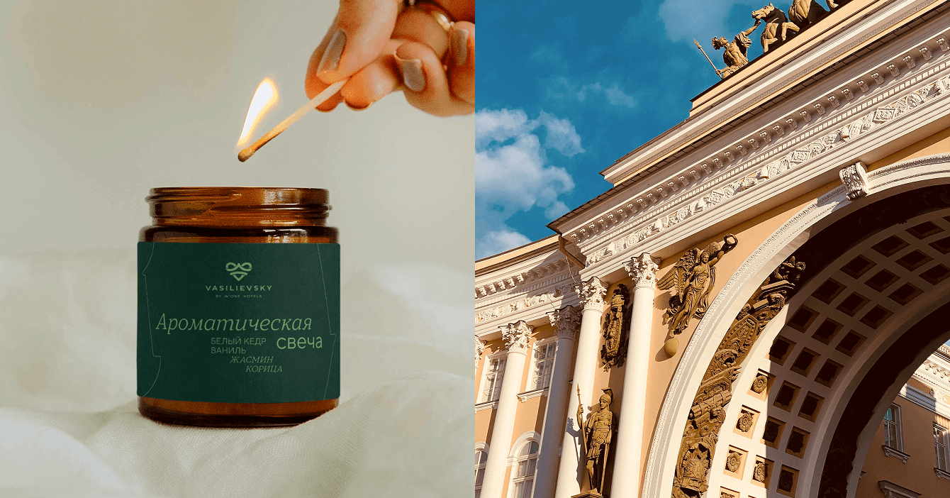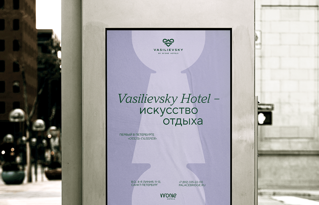 Главная визуальная особенность Петербурга — смешение разных стилей в одном гармоничном образе, городская эклектика города с историей. Главная особенность бренда — баланс между технологиями и, казалось бы, несовместимым живым общением, открытостью и высоким уровнем гостеприимства — синергия образа опытного отельера и современного гига.