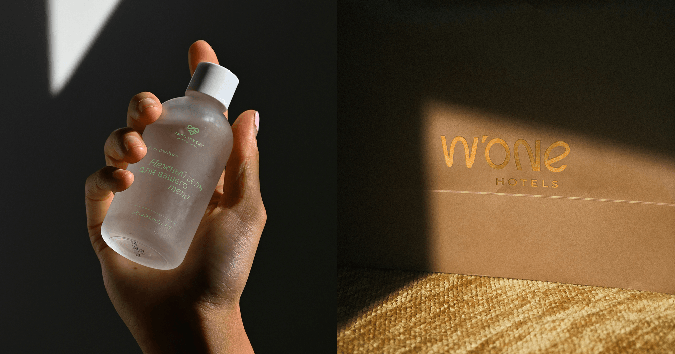 Разрабатывая цветовую палитру бренда нам хотелось уравновесить выразительный характер айдентики и придать ей больше спокойствия, уюта и комфорта с помощью пастельных оттенков. Чтобы носители фирменного стиля гармонично вписывались в интерьеры отелей, мы выстроили палитру, учитывая цветовые особенности каждого из них.