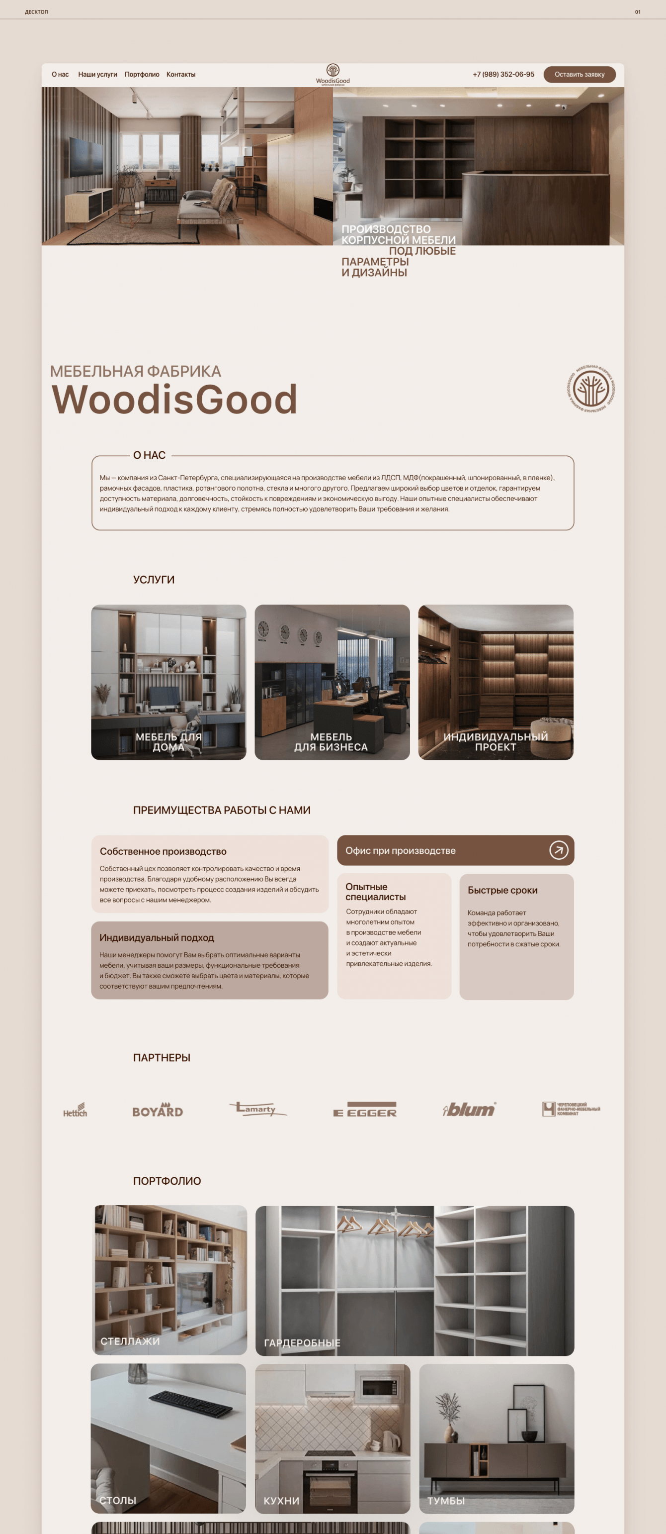 1. Разработать десктоп и мобайл версии сайта для мебельной фабрики в кофейных оттенках