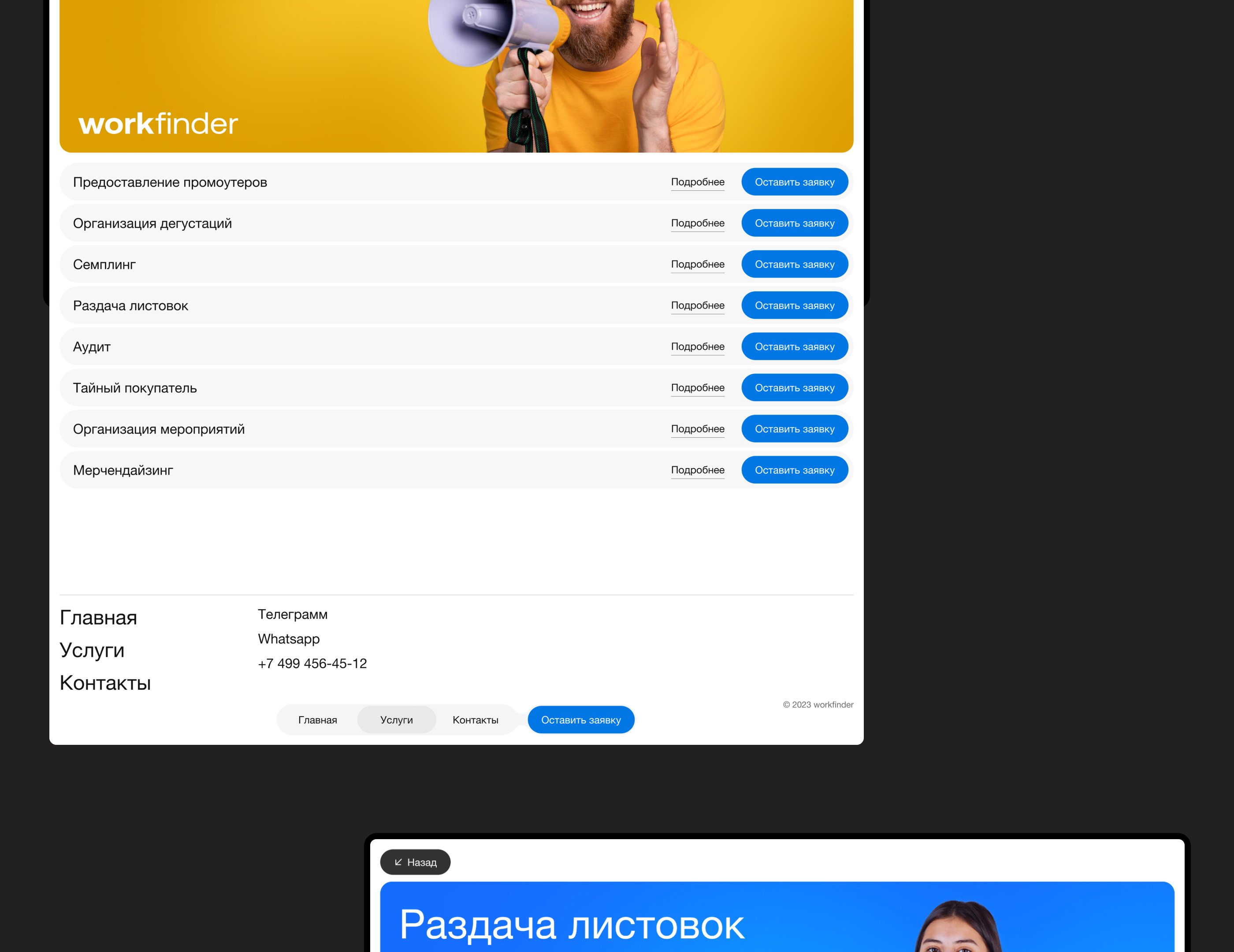 Мы постарались сохранить простоту, но придать проекту характер. Workfinder — это не про скучные резюме, а про людей, которые ищут своё дело. Мы сделали интерфейс, который не пугает, а поддерживает.