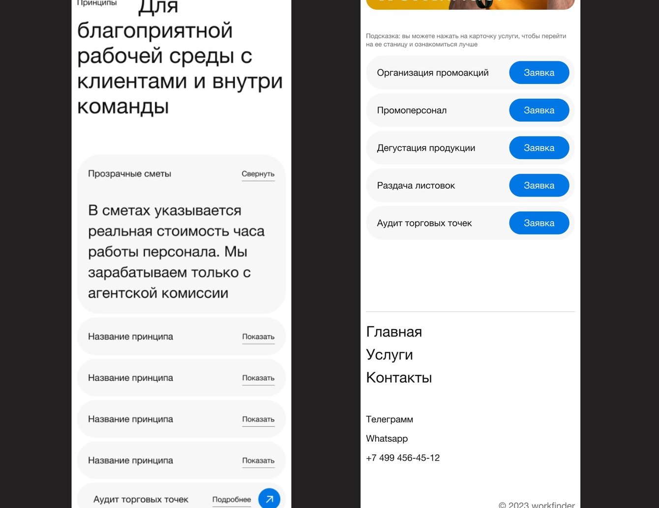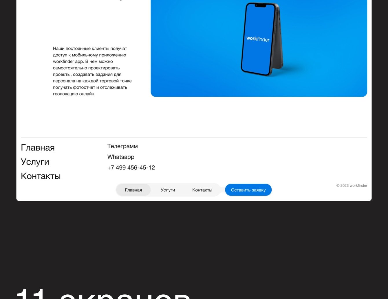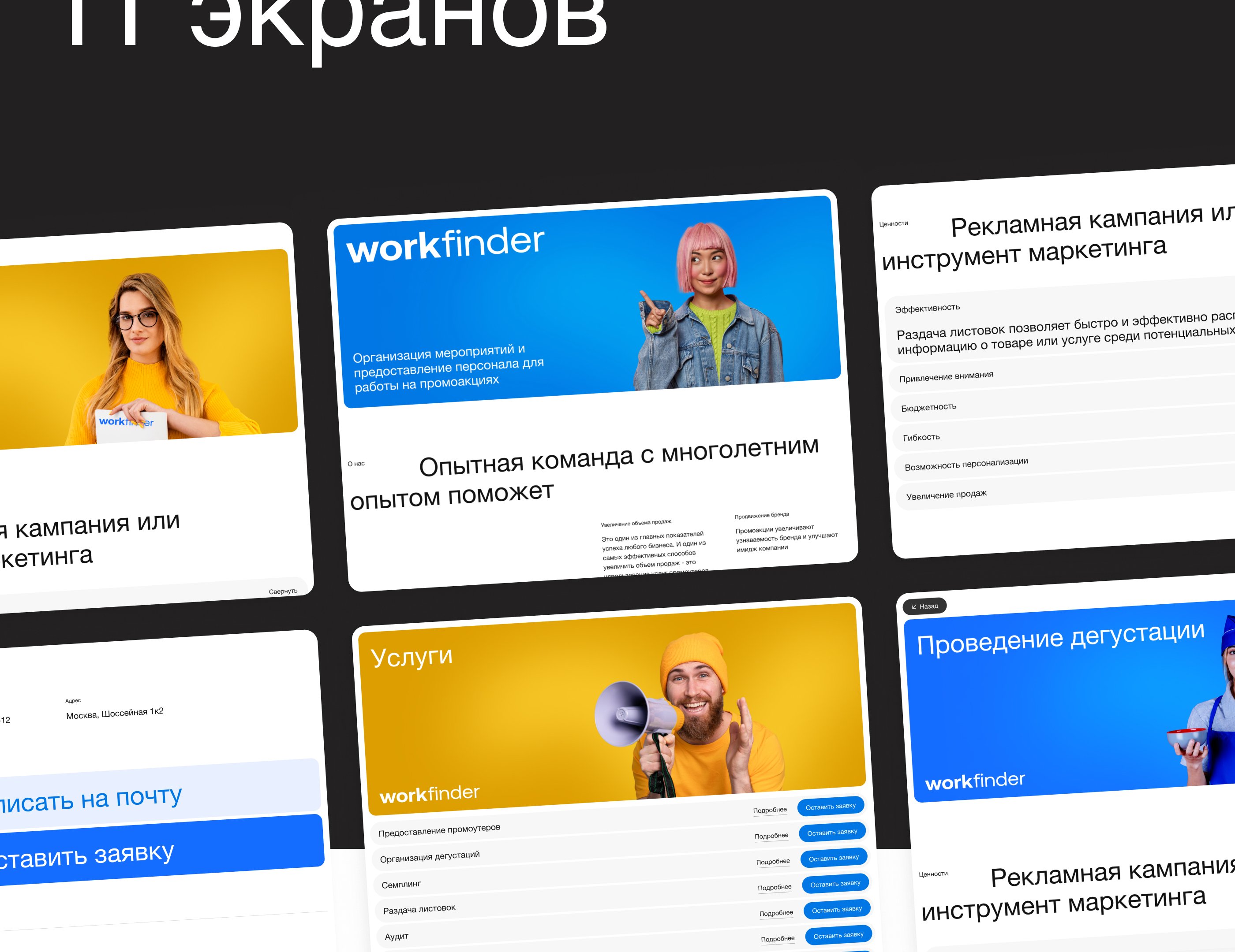 – Создали 11 экранов + дополнительные страницы: вакансии, карточка компании, блог, форма обратной связи.
