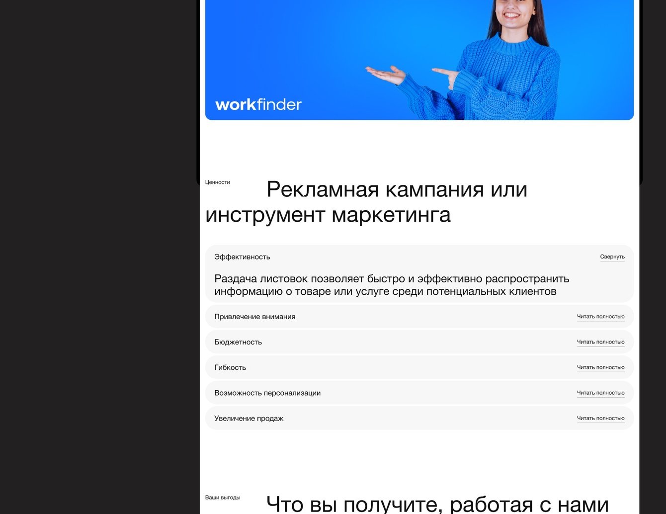 – Грамотная адаптация под мобильные — молодая аудитория заходит с телефона.